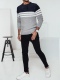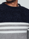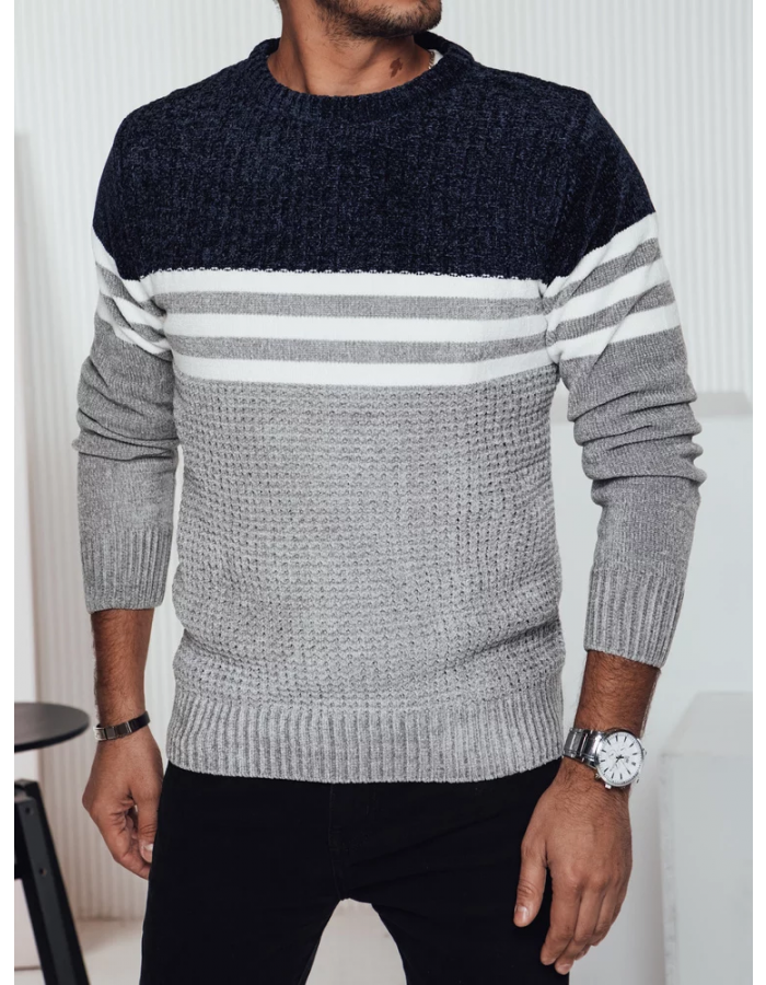 Teplý pánský svetr s výrazným pruhovaným vzorem, ideální na chladnější dny.