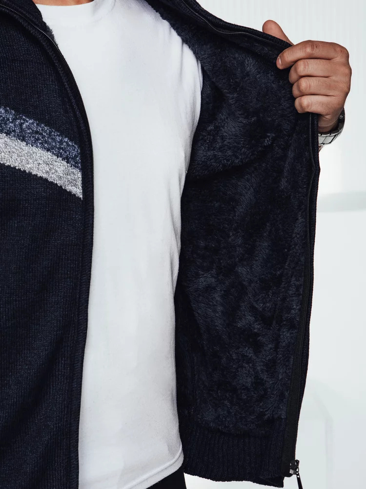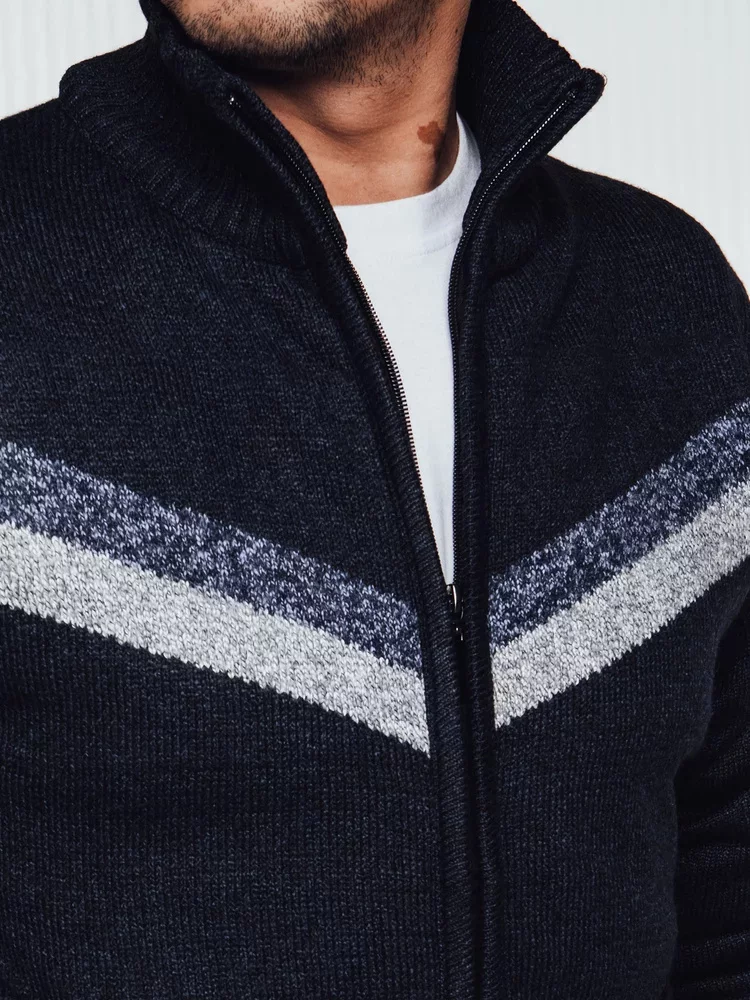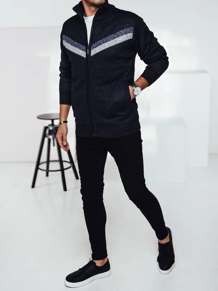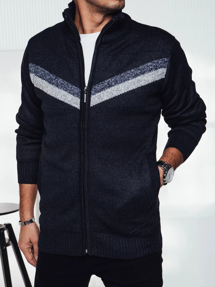 Stylový pánský svetr se zipem a elegantním vzorem na hrudi.