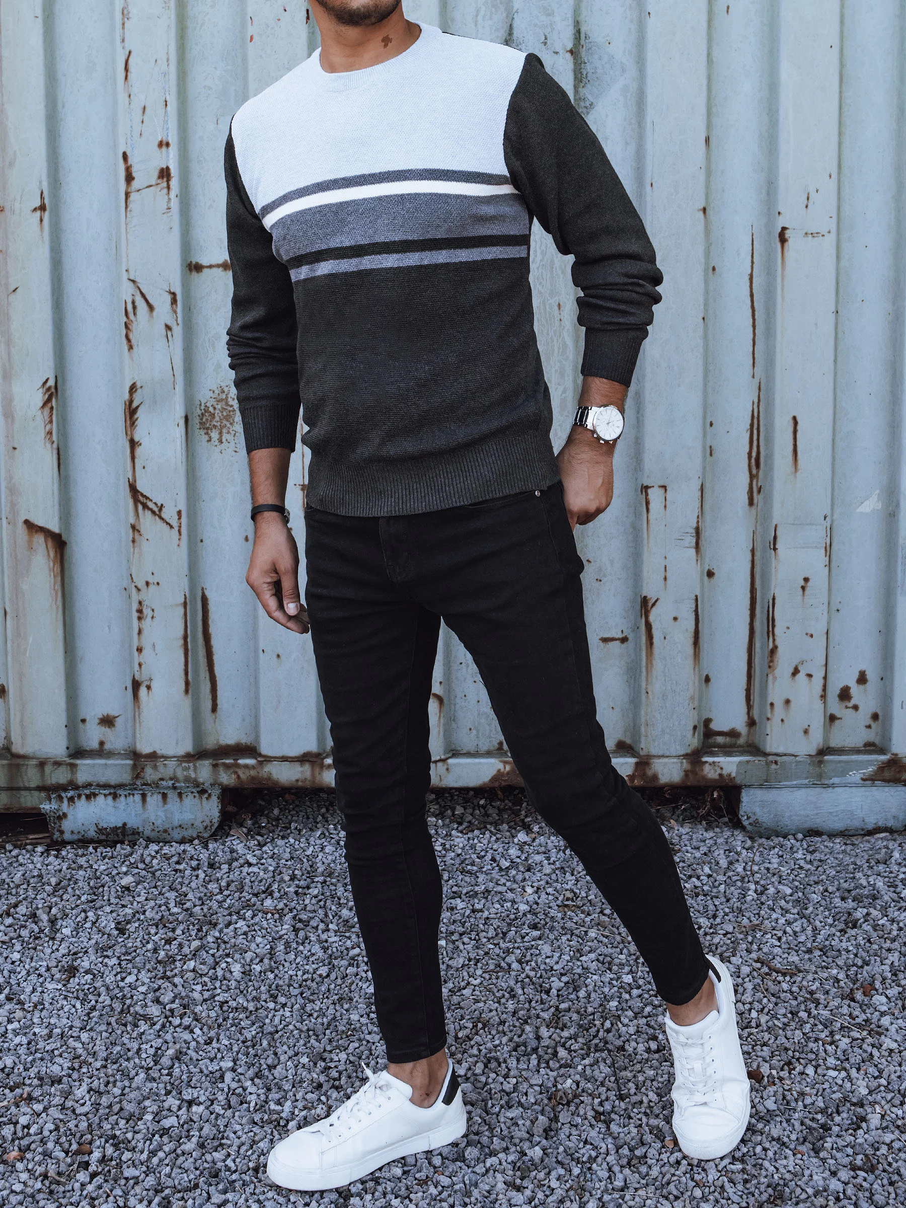 Stylový pánský svetr, který spojuje pohodlí s elegancí. Vyrobený z měkké tkaniny, zajišťuje pohodlí po celý den. Jemné pásky dodávají eleganci, díky čemuž je svetr ideální volbou jak pro každodenní nošení, tak i pro formálnější příležitosti.