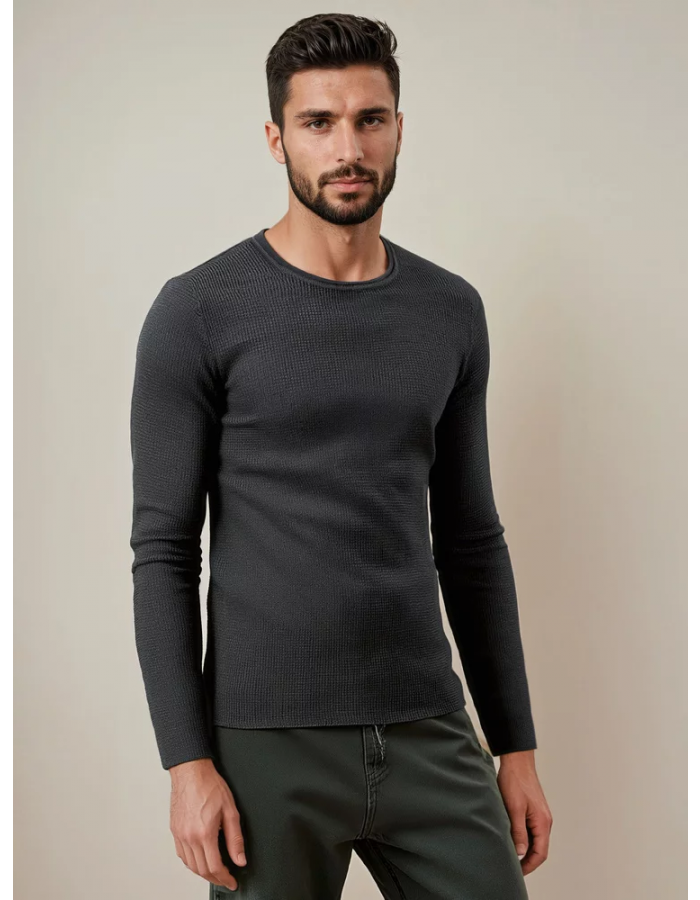 Pánský svetr vyrobený z pleteniny s výraznou texturou, která mu dodává jedinečný styl. Klasický střih a elastický materiál zajišťují plnou volnost pohybu a pohodlí při nošení. Ideální volba pro chladnější dny, hodící se jak k běžným, tak i k elegantnějším stylizacím.