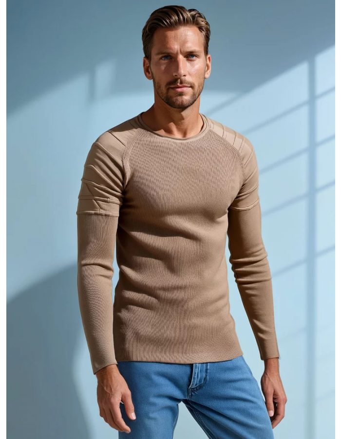 Stylový pánský svetr, který zdůrazňuje eleganci a univerzálnost. Vyrobený z vysoce kvalitní pleteniny, kombinuje klasický střih a moderní provedení. Jemné prošívání na ramenou dodává charakter, zatímco měkká, elastická tkanina zajišťuje pohodlí při nošení po celý den. Ideální pro každodenní stylizace s džíny nebo elegantní kombinace s chinos kalhotami..