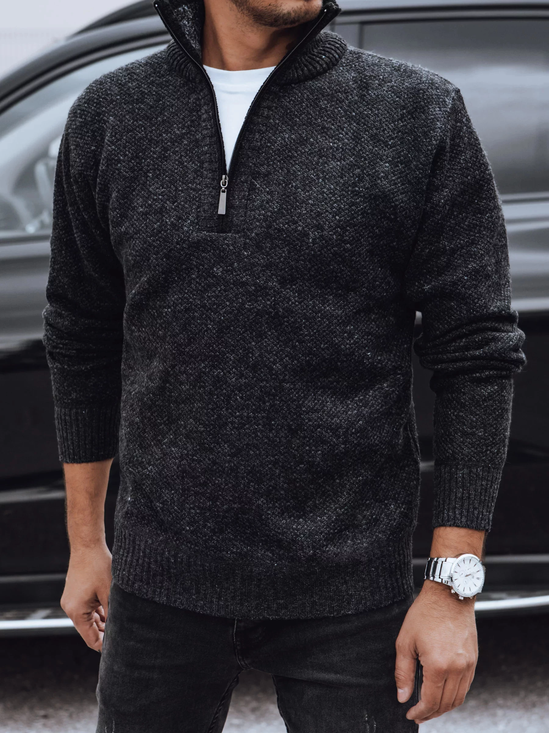 Vyrobený z nejkvalitnějších materiálů, zajišťuje pohodlí po celý den. Ideální na chladnější dny, dokonale se hodí jak k džínům, tak k elegantním kalhotám. Svetr má praktický zip u límce, což umožňuje nastavení výstřihu podle vlastních preferencí. Vyznačuje se unikátním vzorem, který dodává charakter každému outfitu. Dokonalá volba pro muže, kteří si cení pohodlí a elegance každý den.