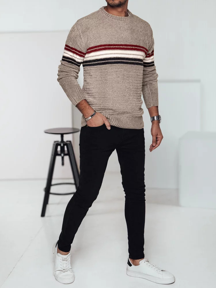 Svetr s poutavým, moderním vzorem v pruzích, který se dokonale hodí do městských trendů. Díky měkkému materiálu zajišťuje pohodlí po celý den a klasický střih dodává eleganci každému outfitu. Ideální pro kombinaci jak s džíny, tak s elegantními kalhotami, pro osoby, které si cení stylu a pohodlí.