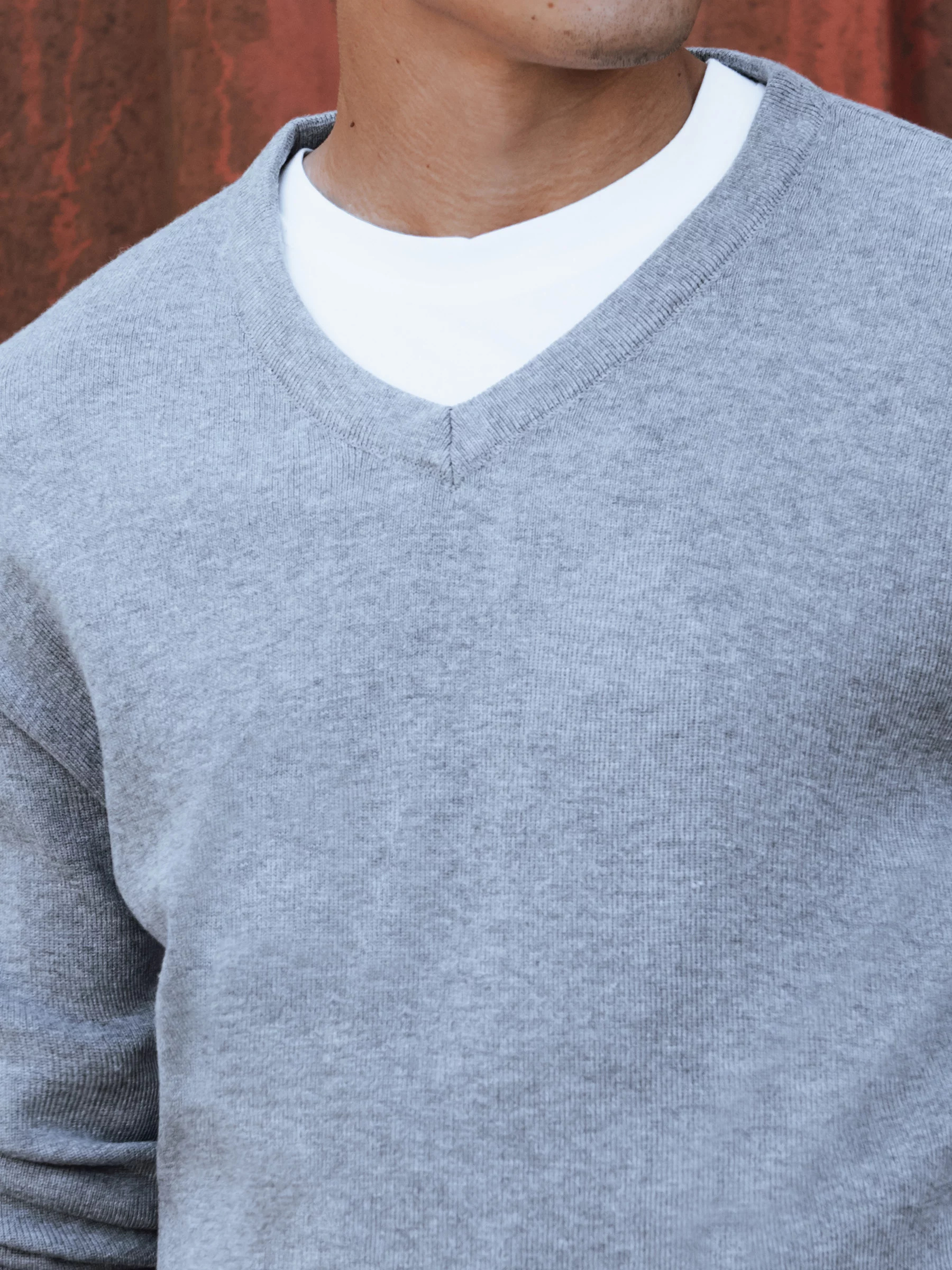 Teplý pánský svetr s výstřihem do V, ideální pro každé roční období.