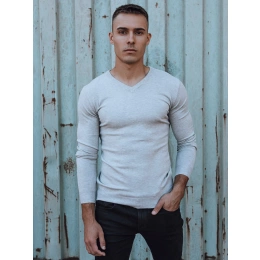 Pánský svetr s výstřihem do V světle šedý Dstreet WX2218 L