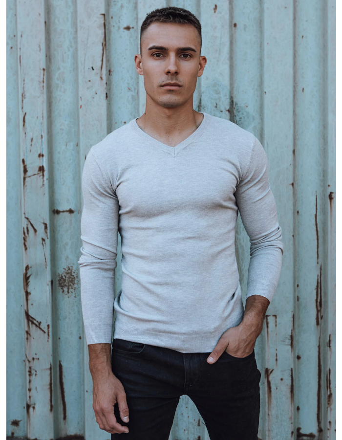 Pánský svetr s výstřihem do V světle šedý Dstreet WX2218