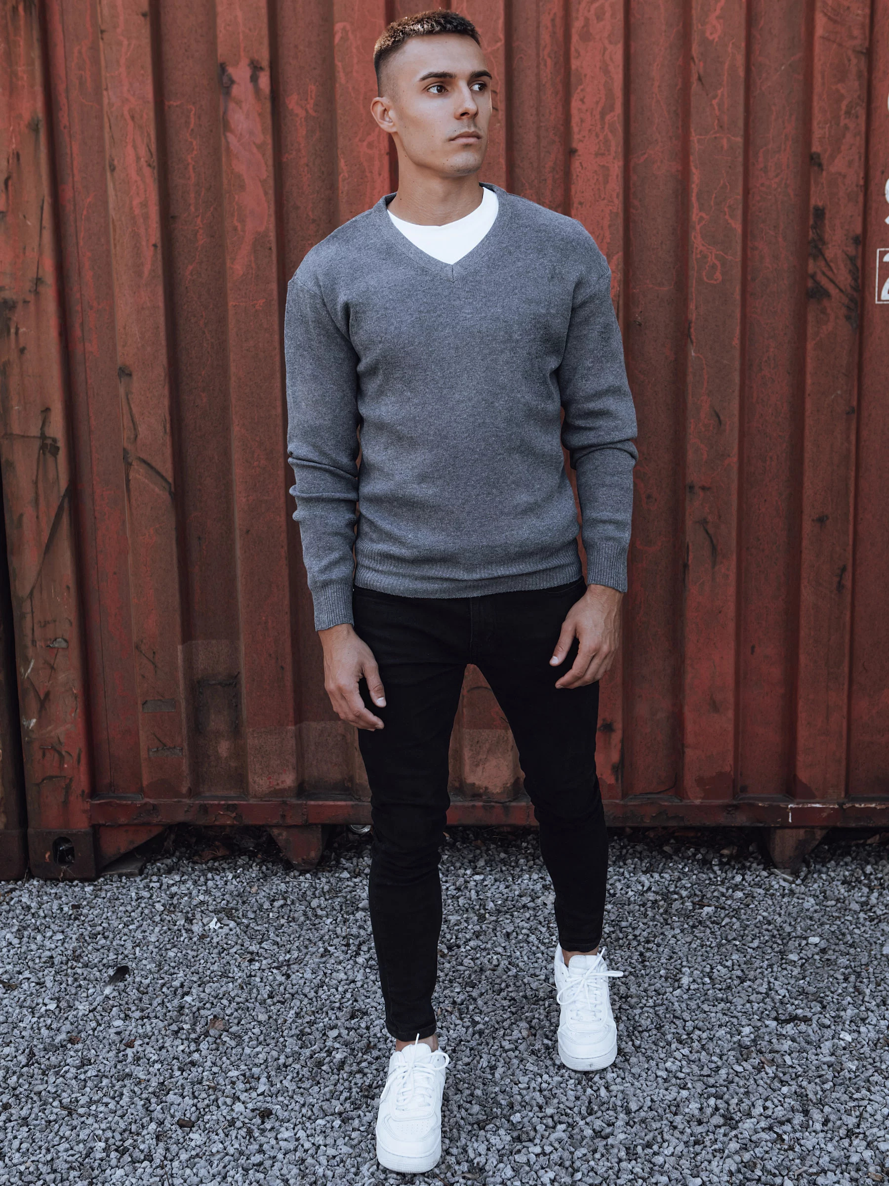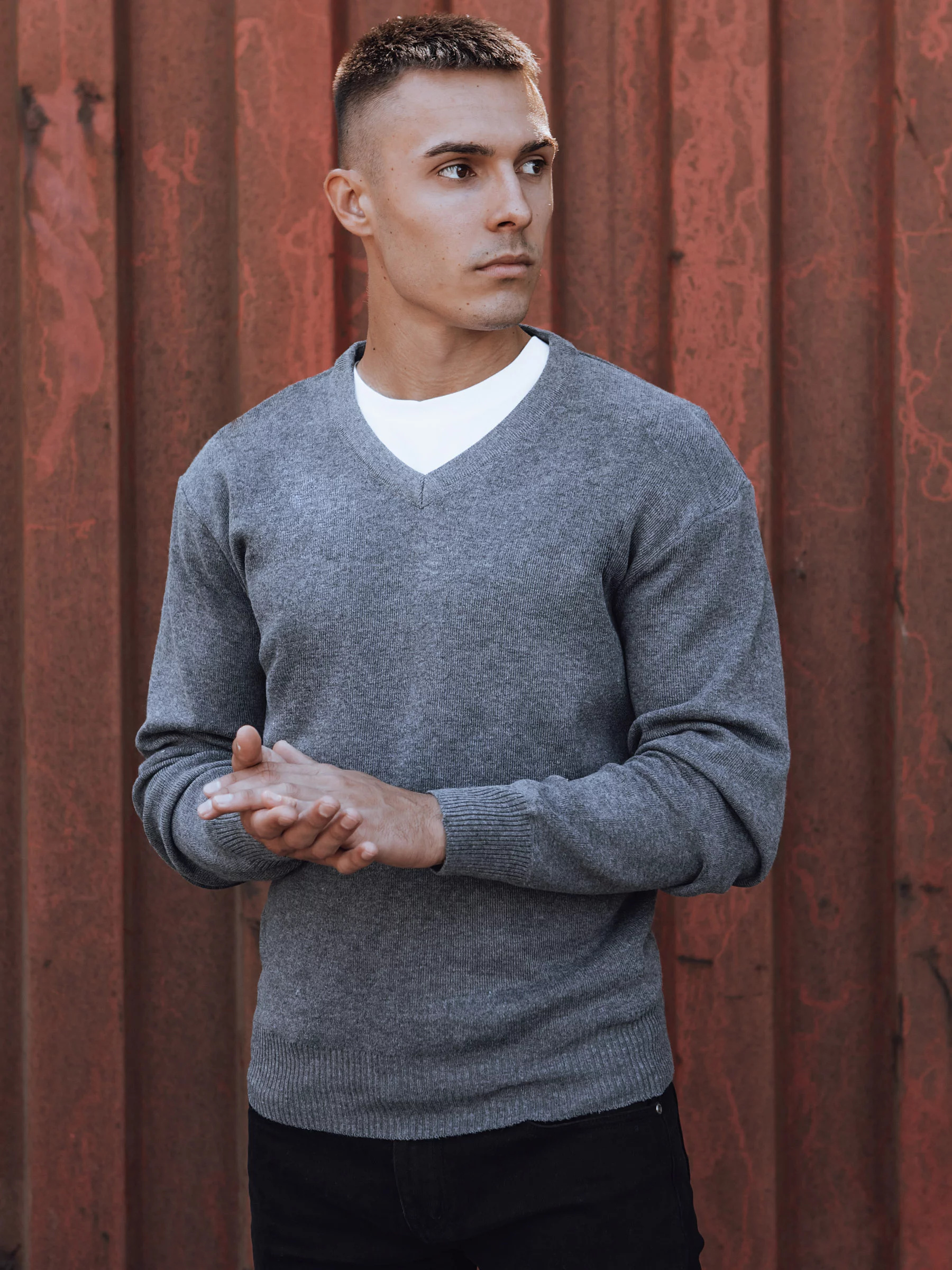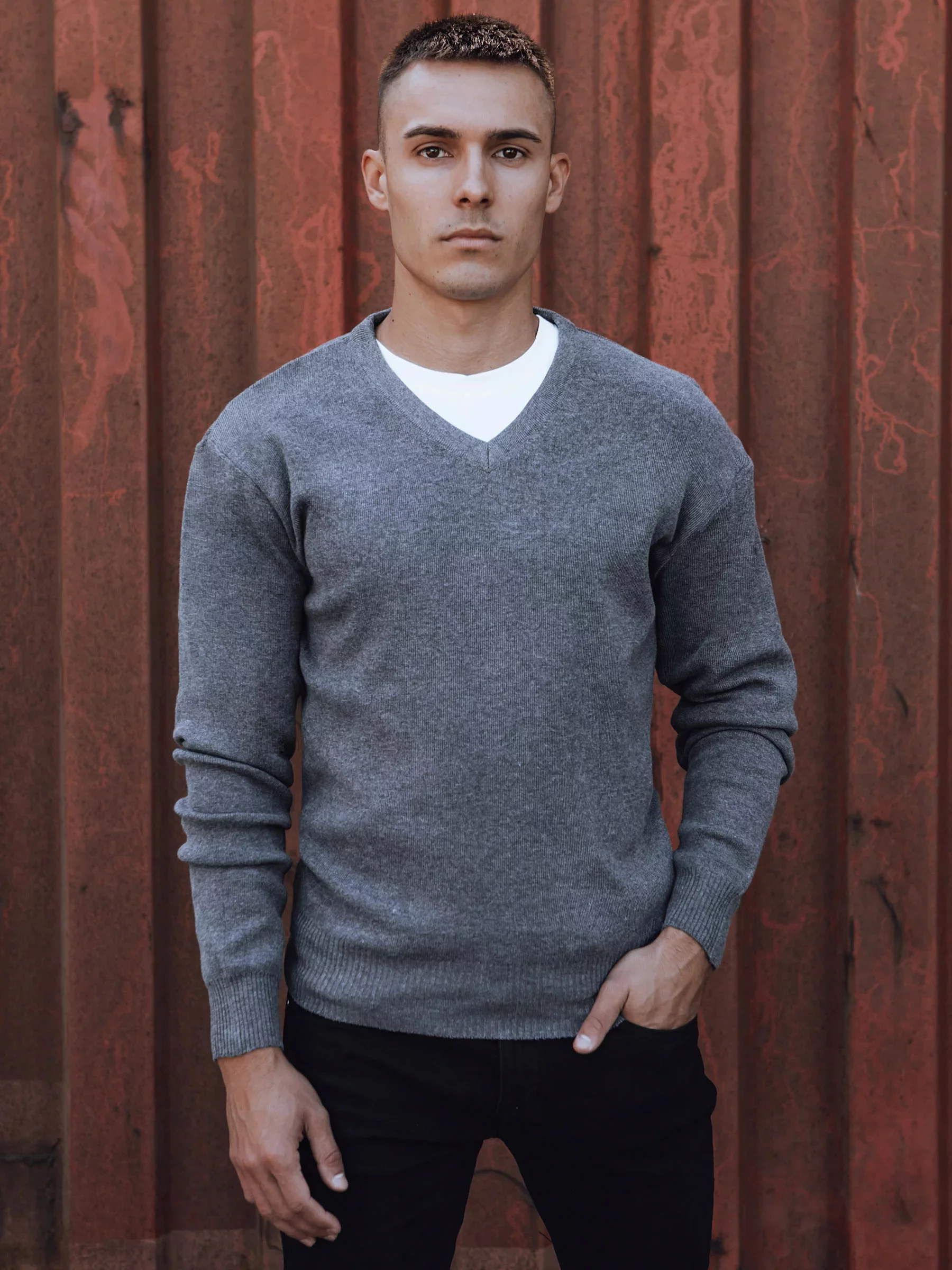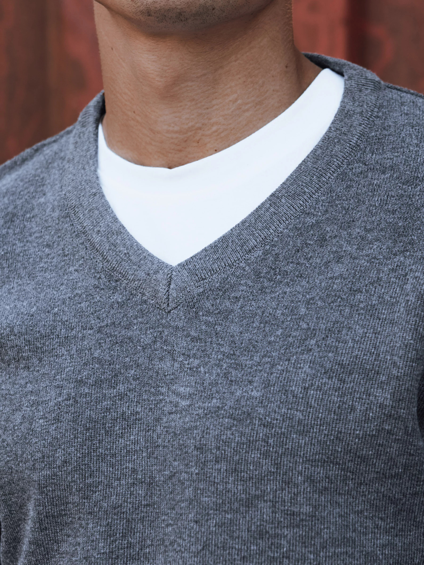 Teplý pánský svetr s výstřihem do V, ideální pro každé roční období.