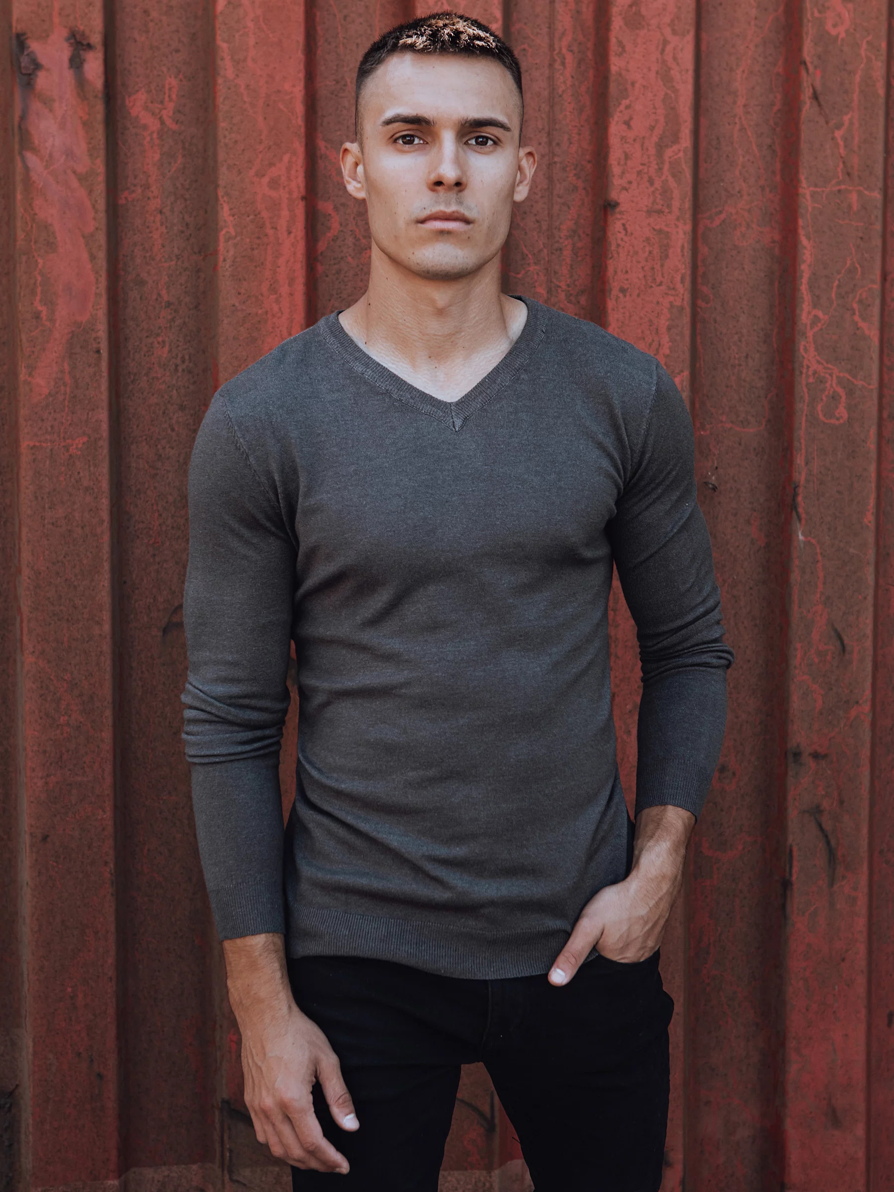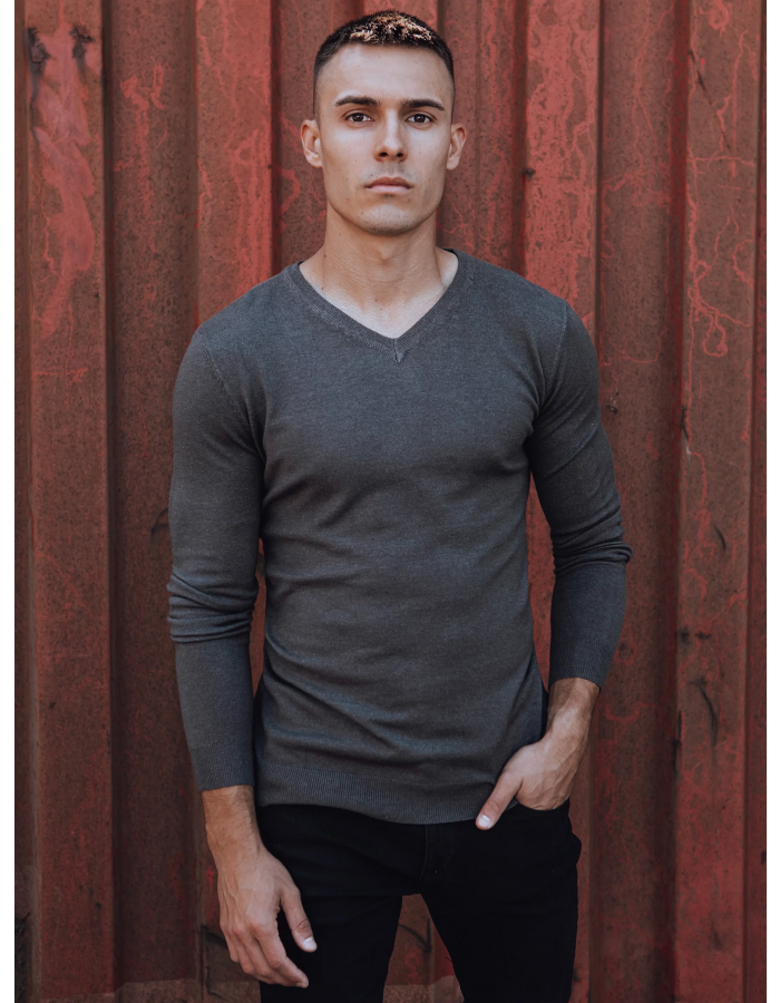 Pánský svetr s výstřihem do V tmavě šedý Dstreet WX2219 M