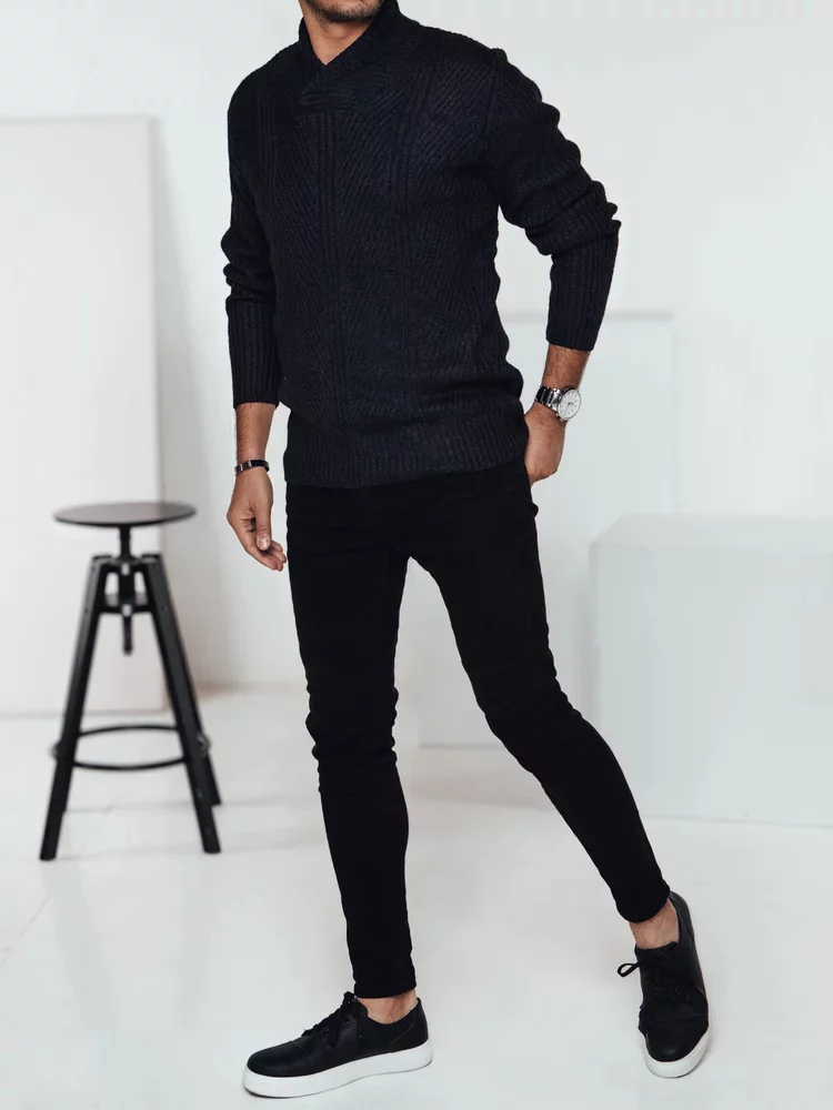 Svetr s šálovým límcem ideální na chladnější dny, vynikající elegantním pletením. Vyrobený z vysoce kvalitního materiálu, který zajišťuje pohodlí a komfort nošení po celý den. Díky univerzálnímu střihu se skvěle hodí jak k ležérním, tak i k elegantnějším stylizacím. Ideální volba pro muže, kteří si cení klasického stylu s moderním nádechem.