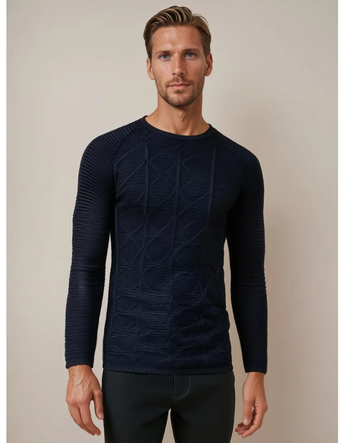 Vyrobený z vysoce kvalitních materiálů, zajišťuje teplo a trvanlivost. Jeho propracovaný střih a texturovaný vzor z něj činí vynikající volbu pro každou příležitost – od neformálního setkání po formálnější událost.