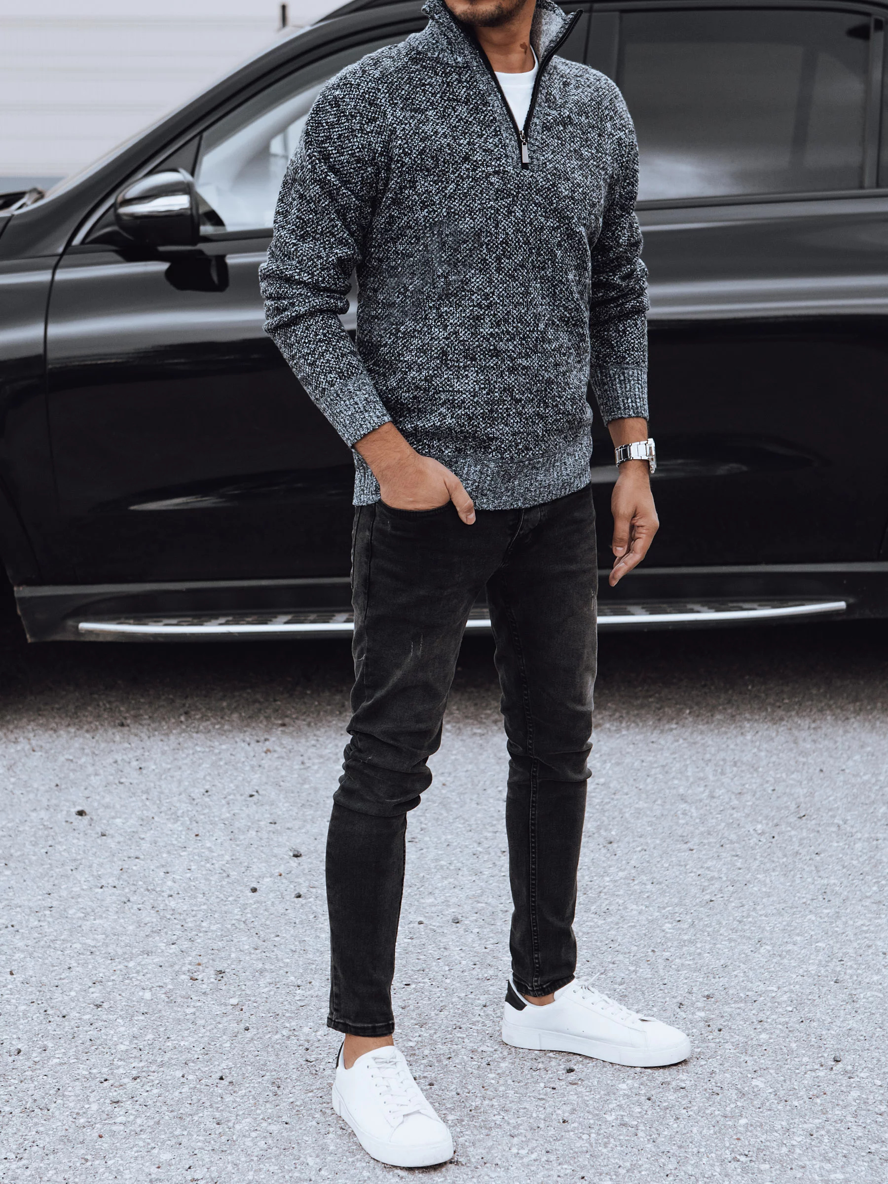 Vyrobený z nejkvalitnějších materiálů, zajišťuje pohodlí po celý den. Ideální na chladnější dny, dokonale se hodí jak k džínům, tak k elegantním kalhotám. Svetr má praktický zip u límce, což umožňuje nastavení výstřihu podle vlastních preferencí. Vyznačuje se unikátním vzorem, který dodává charakter každému outfitu. Dokonalá volba pro muže, kteří si cení pohodlí a elegance každý den.