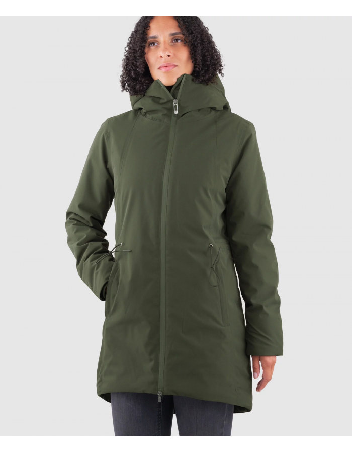 Co kdybychom sesbírali všechna přání, návrhy a zlepšováky a poskládali z nich funkční zimní kabát se stahováním v pase, manžetou v rukávu, ve skvělém střihu a se značkovým zateplením šetrným k přírodě? Pak už by stačilo vybrat dvě nejžádanější barvy a spousta holek by měla letos na podzim radost z nového nejoblíbenějšího ohozu na toulky po městě i po lese. - strečový materiál bez elastanu, tedy recyklovatelný - funkční membrána s vodním sloupecm 10 000 mm a paropropustností 10 000 g/m2/24h - ekologická vodoodpudivá povrchová úpravá DWR PFC Free - voděodolný dvoucestný zip SAB a podlepené švy pro vyšší funkčnost - dvě vnější kapsy a vnitřní náprsní kapsa uzavíratelné na zip - praktické stahování v pase pro individuální přizpůsobení střihu - stahování spodního lemu k zamezení úniku tepla - rukávy zakončené vnitřním strečovým úpletem pro vyšší tepelný komfort