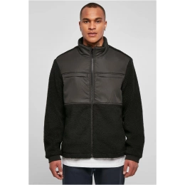 Módní pánská bunda se prezentuje vysoce kontrastní směsí látek. Tělo a rukávy jsou vyrobeny z nadýchané Sherpy, zatímco hrudník se leskne třpytivou polyesterovou tkaninou. Dvě náprsní kapsy se skrytými zipy vytvářejí harmonické akcenty a jsou doplněny dvěma bočními kapsami a pohodlnými žebrovanými manžetami. Bunda se zapíná na zip a má také stahovací šňůrku a zarážku na lemu pro větší přilnavost k tělu při nižších teplotách. Další pohodlí při nošení zajišťuje volný střih a příjemná podšívka charmeuse.