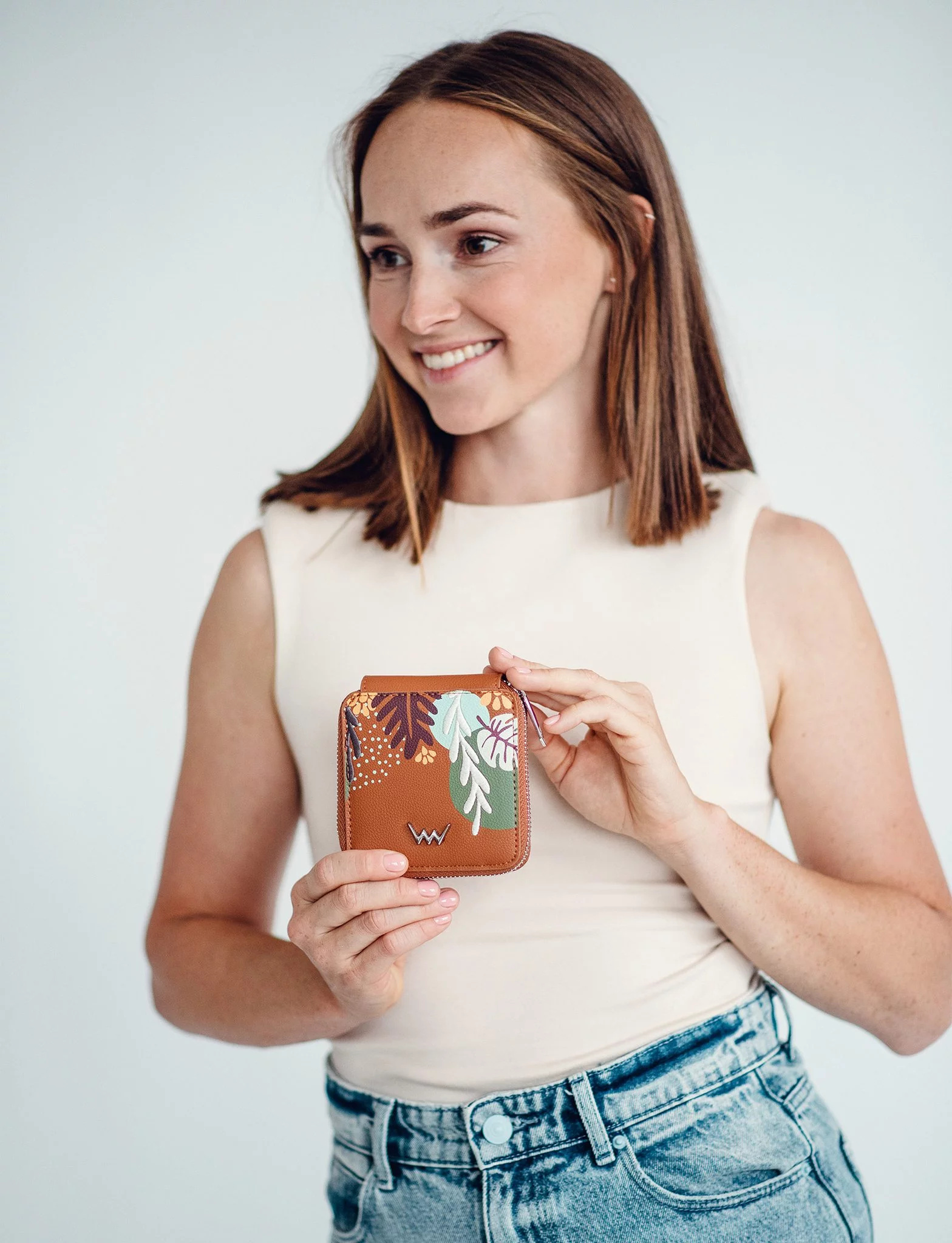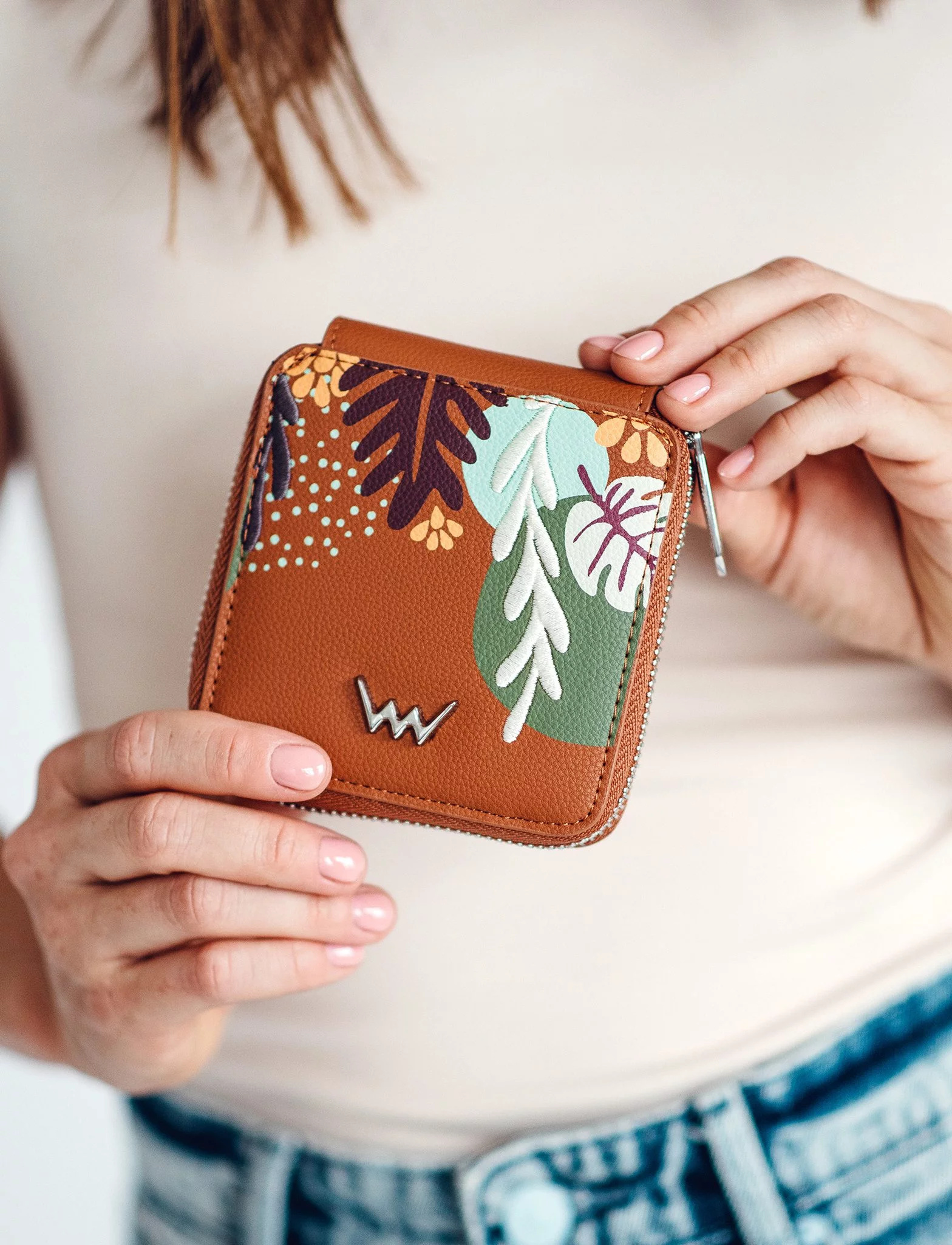 Peněženku Patricia Desert zdobí originální květinový vzor, kterým Ti rozjasní i zachmuřený den. Je proto jasný, že když ji vytáhneš při placení, žádnému oku neunikne. Uvnitř má chytré přihrádky, kam bezpečně schováš karty, mince i bankovky. Zip zajistí, že se Ti z ní nic nepoztrácí. Peněženka Patricia Desert prostě zvládne pojmout všechny důležité věci. Ať už se vydáš na kávu s kamarádkou nebo na rychlý nákup.