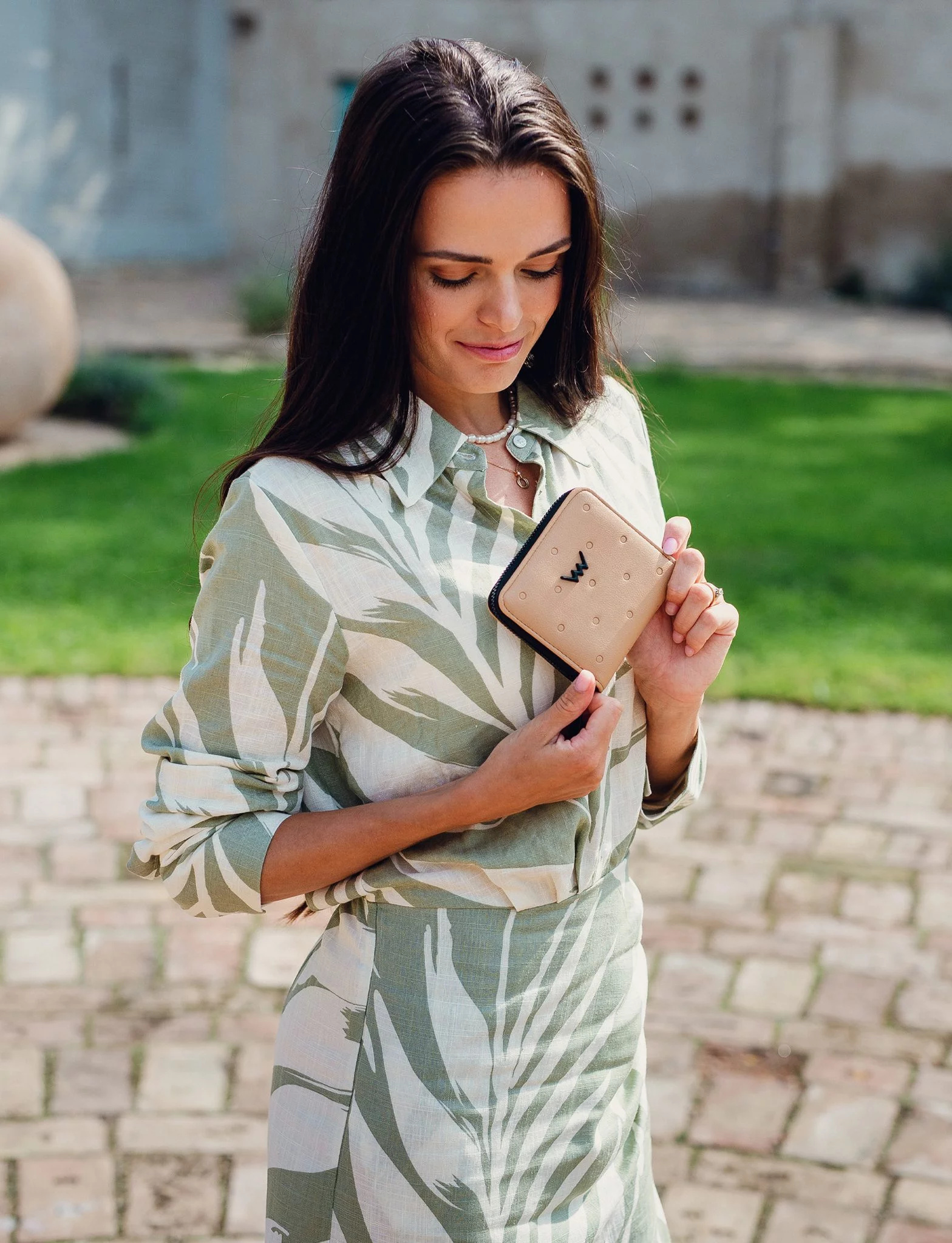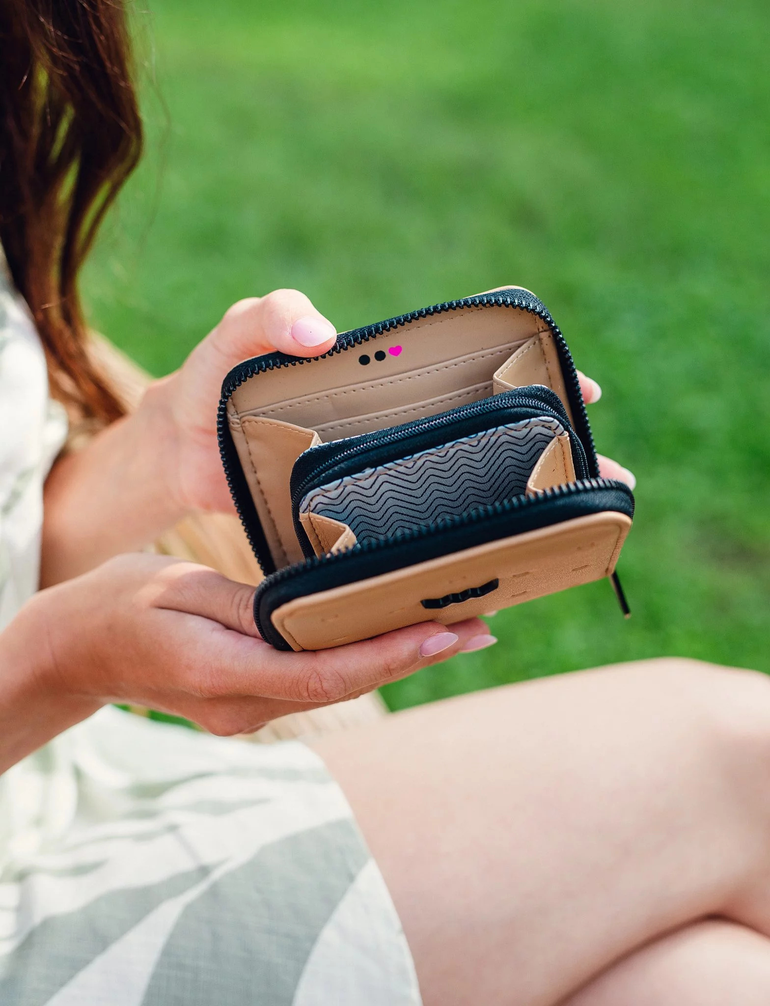 Pro milovnice decentního stylu je tu peněženka Charis Mini s embosovanými puntíky. S tmavým kontrastním kováním a detaily, které zaujmou na první pohled, je toto provedení puntíků jako stvořené pro Tebe. Růžové srdíčko uvnitř dodává na roztomilosti. Připrav se na novou úroveň elegance ve světě peněženek.