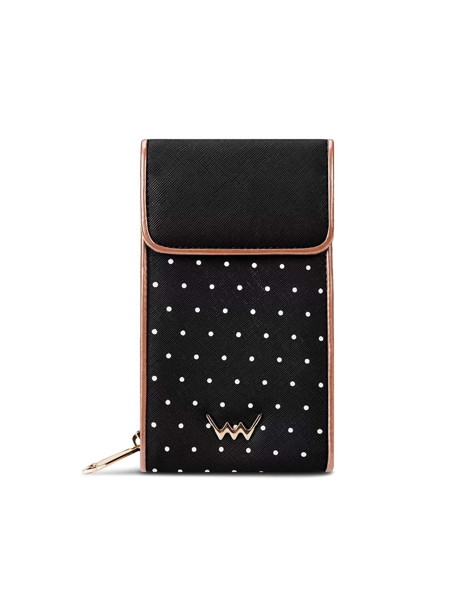 - Puntíkatý vzor s výrazným kovovým logem Vuch