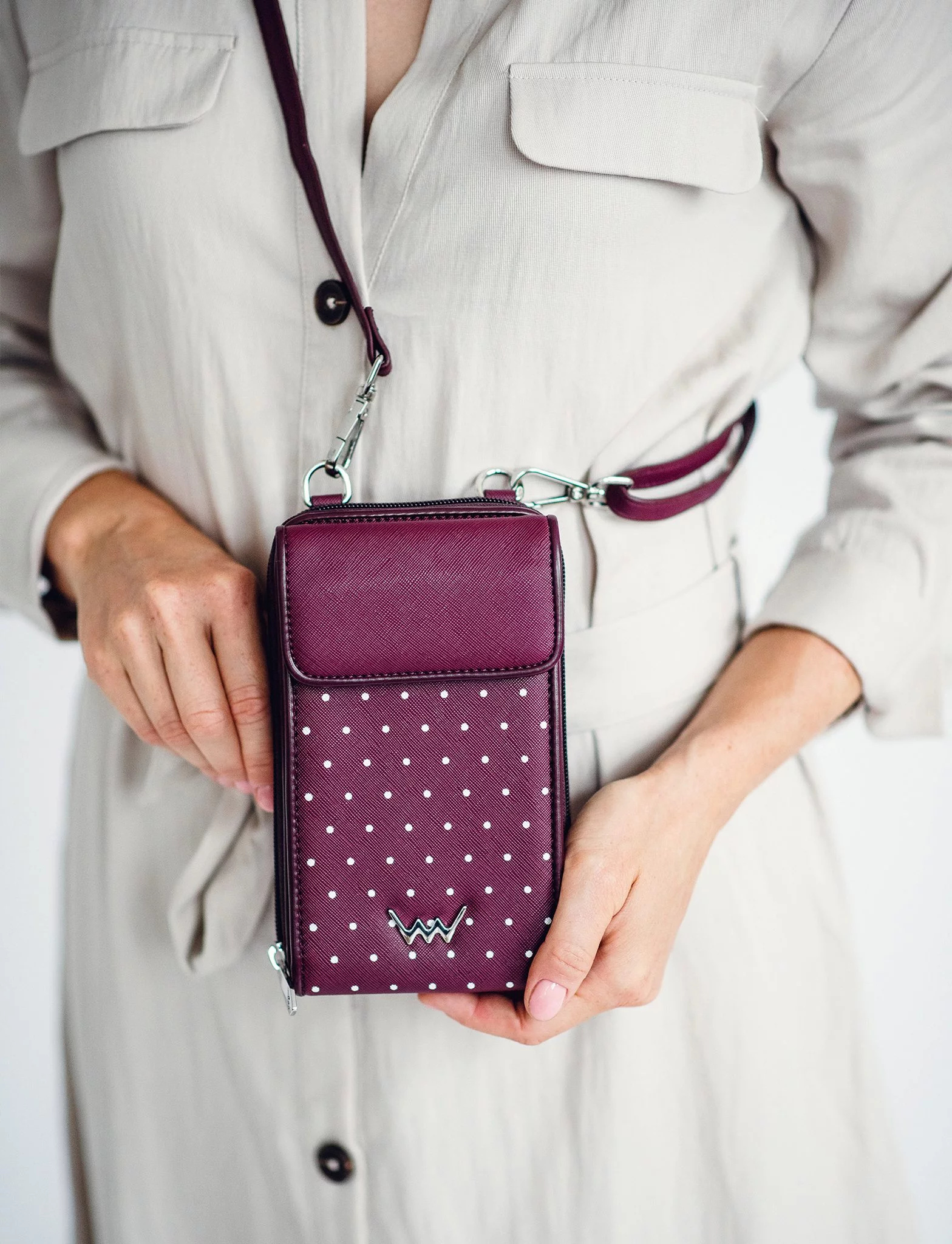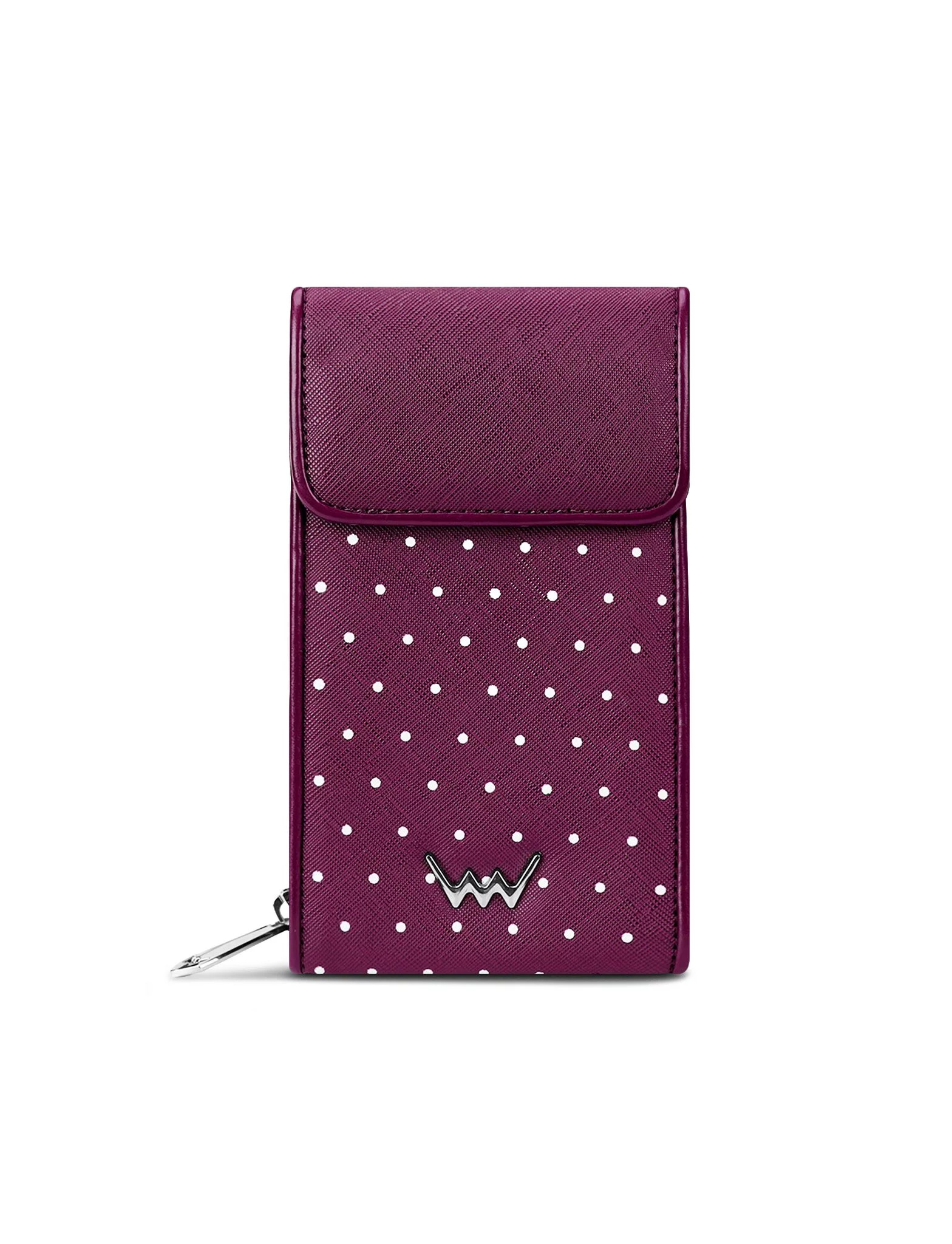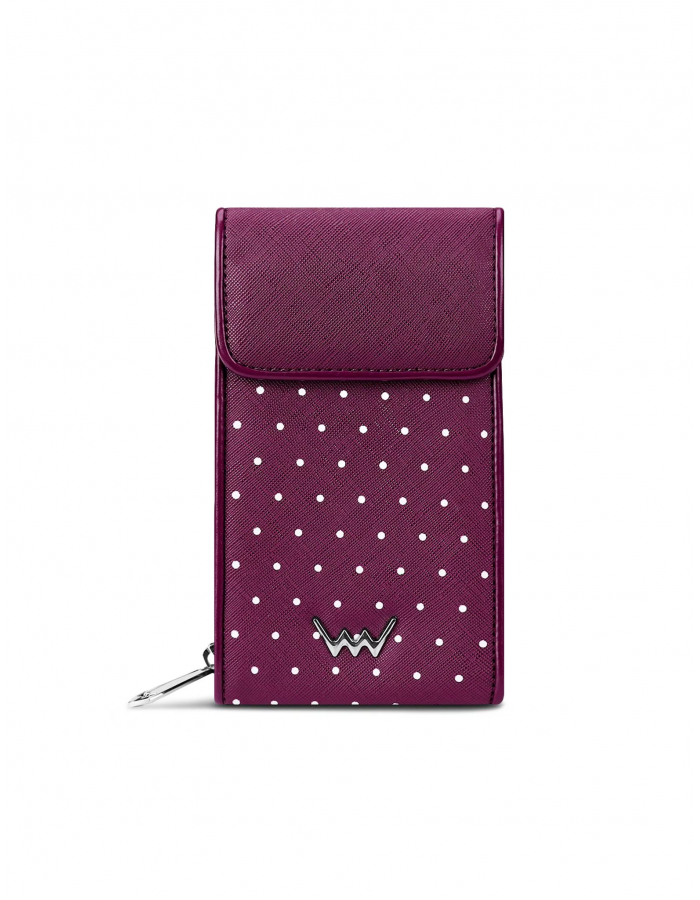 - Puntíkatý vzor s výrazným kovovým logem Vuch