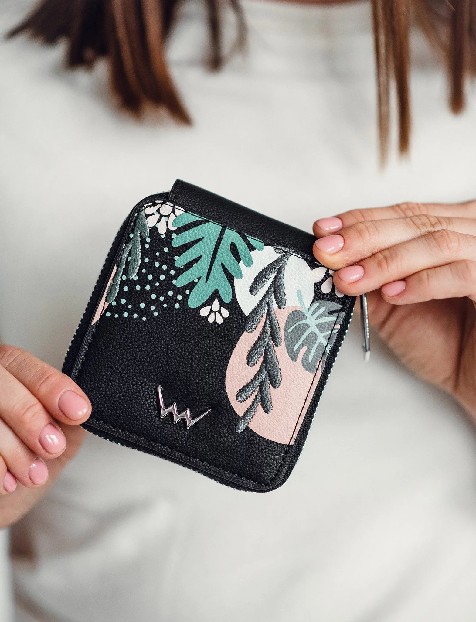 Peněženku Patricia Desert zdobí originální květinový vzor, kterým Ti rozjasní i zachmuřený den. Je proto jasný, že když ji vytáhneš při placení, žádnému oku neunikne. Uvnitř má chytré přihrádky, kam bezpečně schováš karty, mince i bankovky. Zip zajistí, že se Ti z ní nic nepoztrácí. Peněženka Patricia Desert prostě zvládne pojmout všechny důležité věci. Ať už se vydáš na kávu s kamarádkou nebo na rychlý nákup.