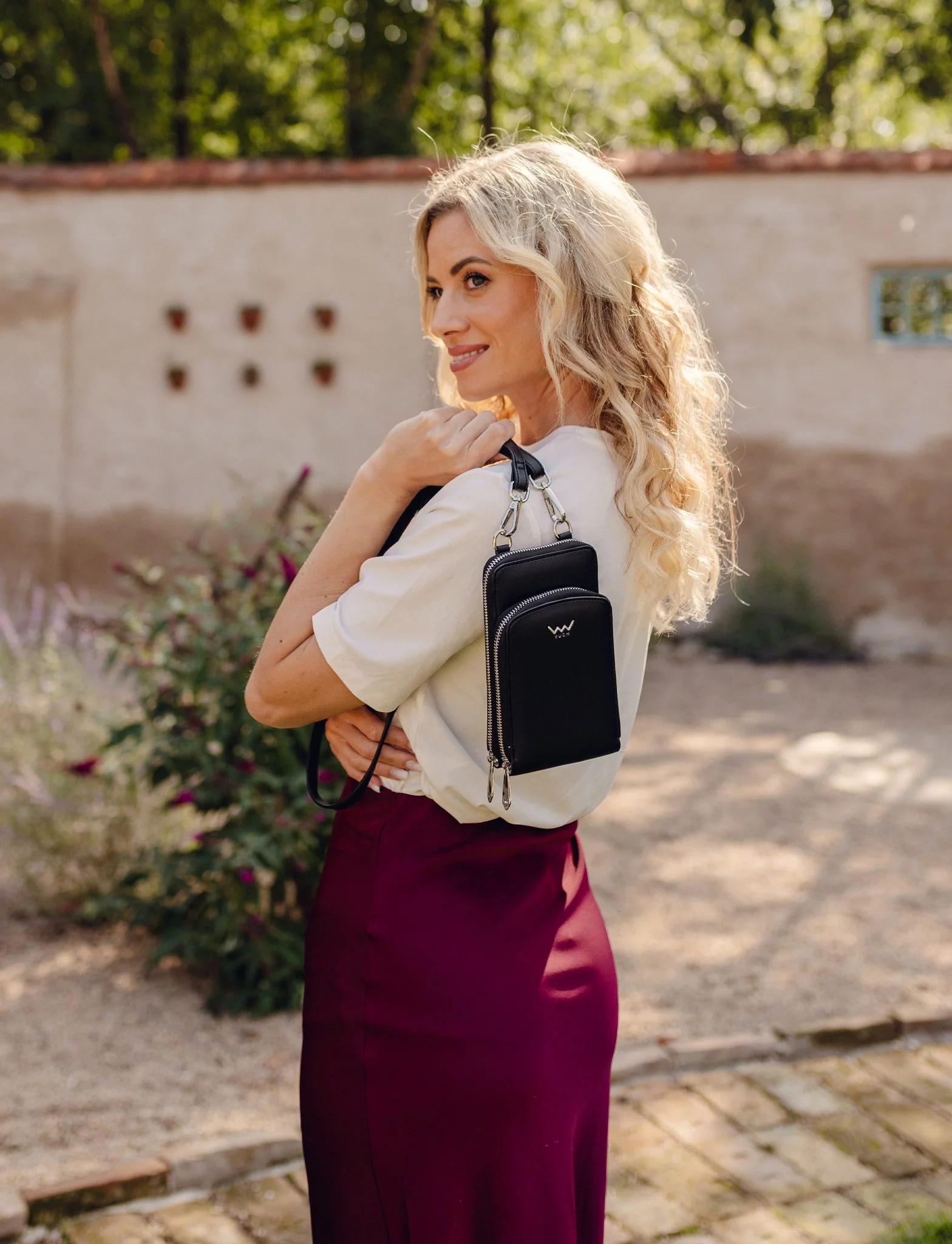 Když chceš být stylová a mít po ruce všechny nezbytnosti, přichází na scénu crossbody peněženka Rosia. Elegantní minimalistický design doplněný dvěma oddělenými kapsami pobere mobil, klíče a třeba i rtěnku. Rosia Ti přijde vhod, když nepotřebuješ velkou kabelku.