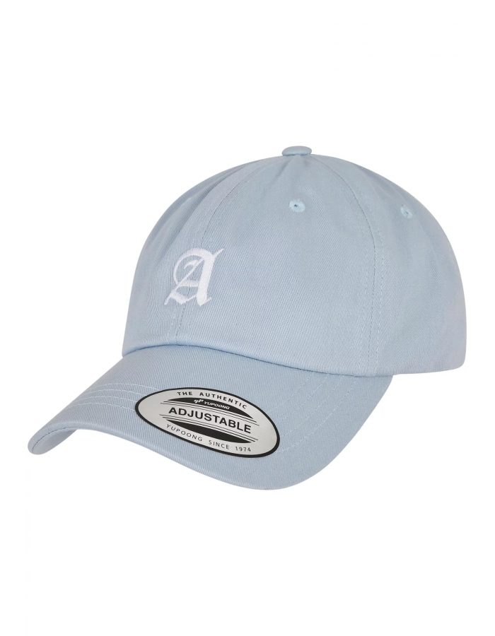 Obyčejná ve světle modré kšiltovce má na přední straně velké písmeno – výběr je mezi A, L, M nebo S ve starém kurzívě. Neokázalý styl završuje zakřivený kšilt s ozdobnými švy. Kromě toho je kšiltovka univerzální velikosti s možností přizpůsobení individuální velikosti pomocí zapínání na zadní straně. Použitý bavlněný materiál slibuje dokonalé pohodlí při nošení.