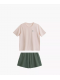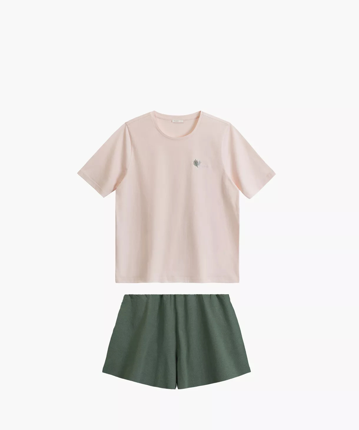 Celý komplet je ušit z jemné bavlněné látky, která je příjemná na dotek, prodyšná a vhodná pro citlivou pokožku. Díky lehkému provedení je tento model vhodný zejména v teplejších obdobích roku.