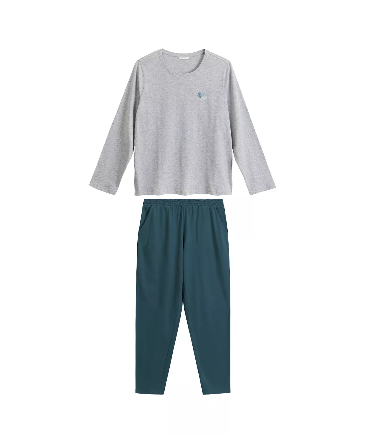 Užijte si kvalitní a pohodlný spánek s elegantním pyžamem Atlantic NLP-498. Tento model nabízí diskrétní dvoubarevné provedení (např. šedý melír vršek a modré kalhoty) s jemnou výšivkou na hrudi, které působí decentně a stylově.