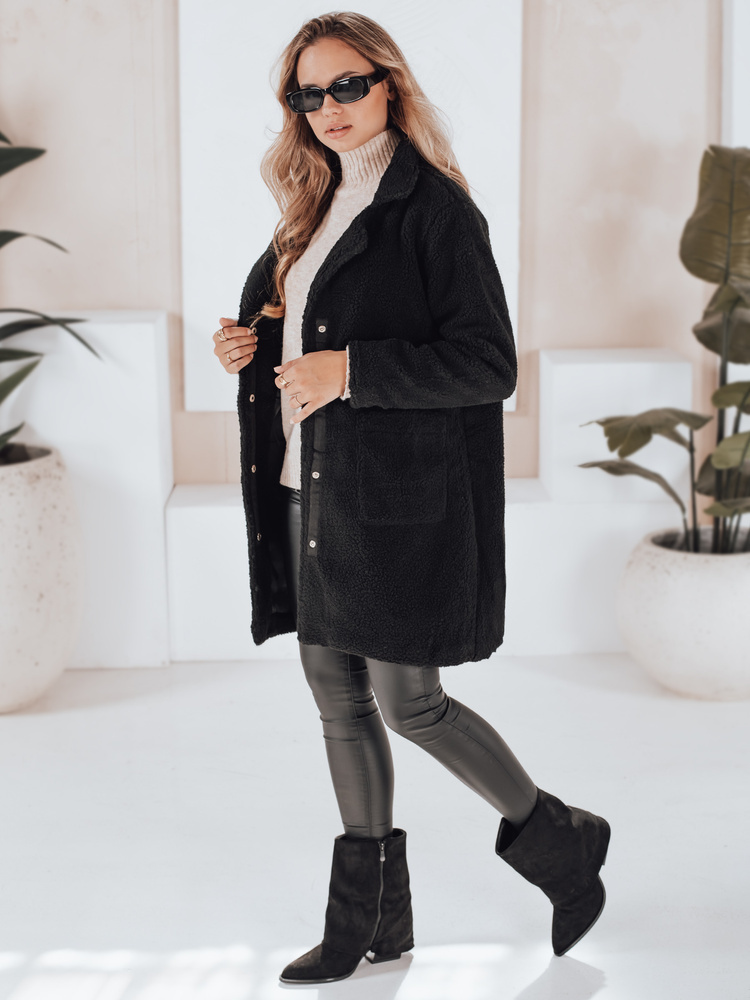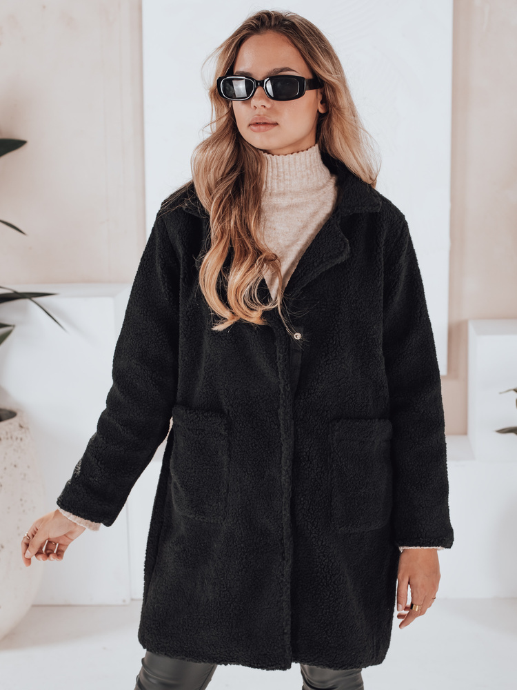 Płaszcz zimowy damski teddy futrzany czarny Dstreet NY0756