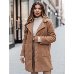Płaszcz zimowy damski teddy futrzany kamelowy Dstreet NY0758z