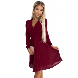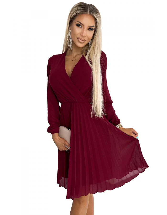 Isabella - plisované šifonové šaty s dlouhým rukávem a výstřihem.