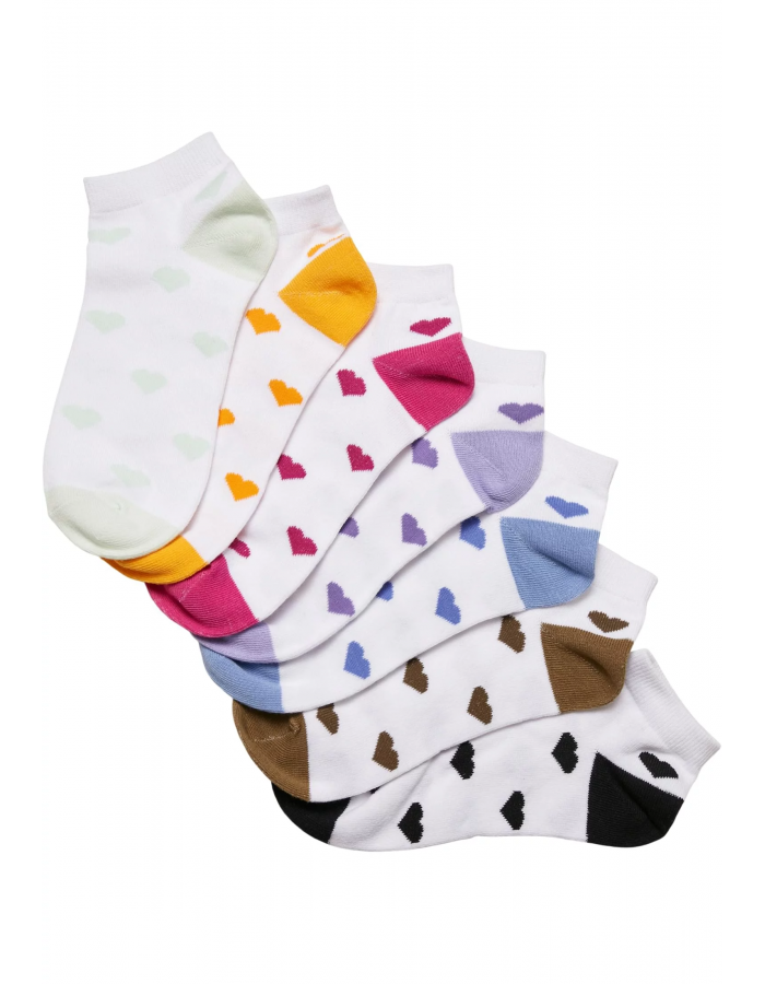 Sada obsahuje sedm párů teniskových ponožek s krásným designem, respektive dvoubarevným celoplošným motivem srdce. Oblasti špičky a paty jsou zvýrazněny odpovídající barvou. Sada je dostupná ve čtyřech velikostech.