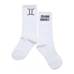 Ponožky s černým nápisem 'GEMINI ENERGY' a symbolem znamení Blíženců. Ponožky jsou vyrobeny z kvalitního materiálu, který je měkký a pohodlný na nošení. Tento výrazný design je ideální pro ty, kteří se chtějí hrdě hlásit ke svému znamení zvěrokruhu a přidat stylový prvek do svého outfitu. Materiál: 78% bavlna 19% polyester 2% elastan.