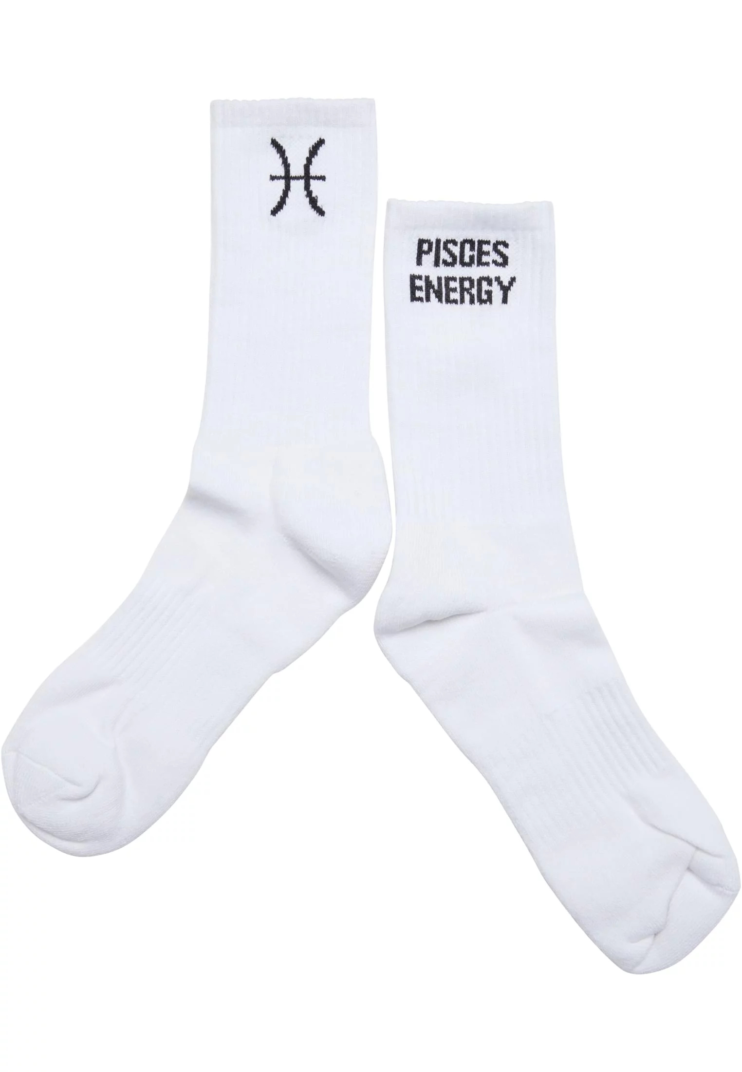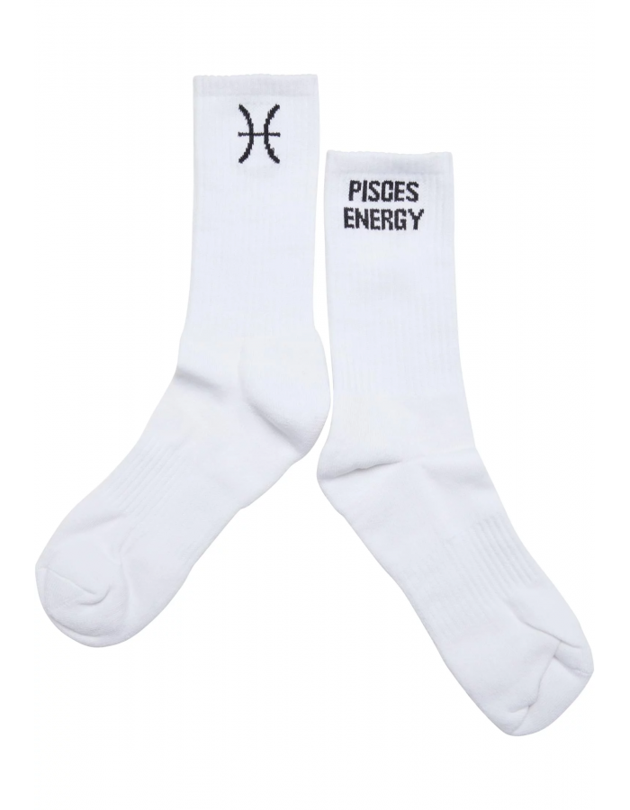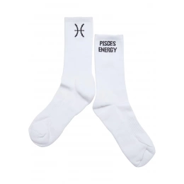 Ponožky s černým nápisem 'PISCES ENERGY' a symbolem znamení Ryb. Ponožky jsou vyrobeny z pohodlného a pružného materiálu, který zajišťuje komfort při nošení. Tento design je ideální pro ty, kteří se chtějí vyjádřit prostřednictvím svého znamení zvěrokruhu, a přidává stylový detail do každodenního outfitu. Materiál: 78% bavlna 19% polyester 2% elastan.