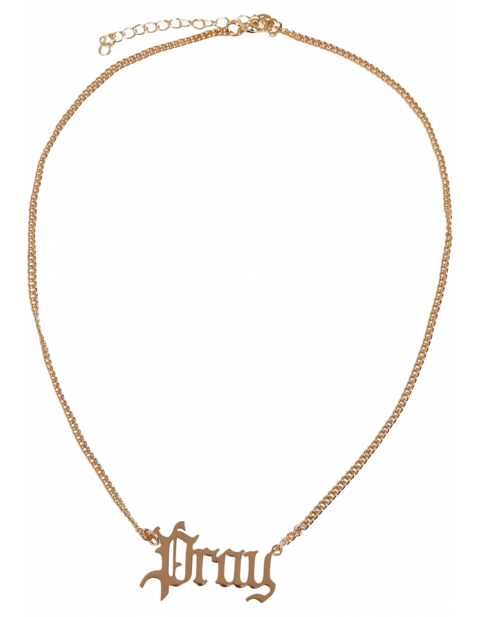 Tento náhrdelník zobrazuje na konci jemného řetízku velký přívěsek "Modli se" se složitým kurzívou. Se 47 centimetry je řetízek středně dlouhý, přičemž velikost lze dále upravit pomocí sedmicentimetrového prodlužovacího řetízku. Šperk je vyroben z nerezové oceli a železa.