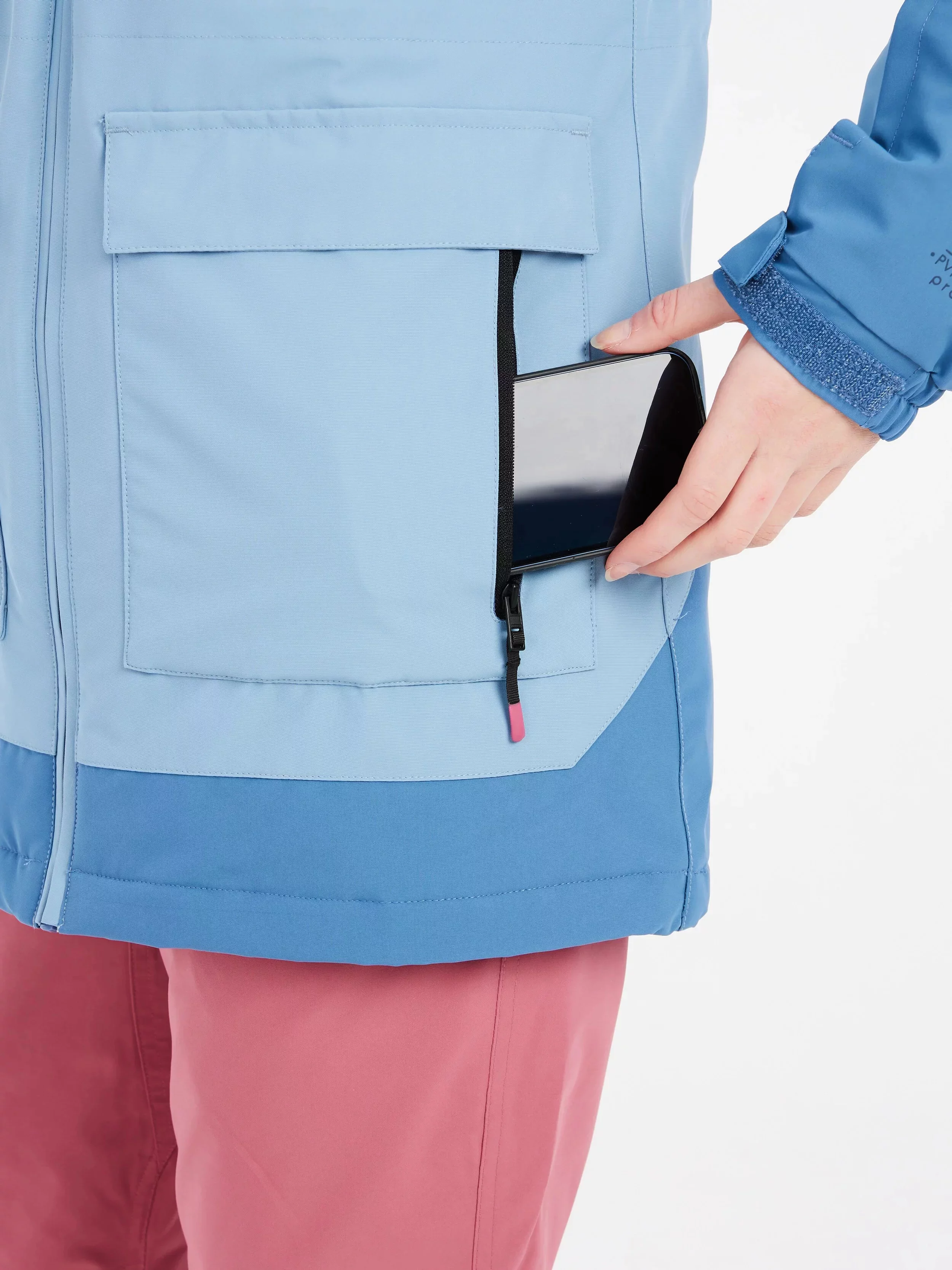 Lyžařská a snowboardová bunda PRTBACKUP má přední kapsu na zip a náprsní kapsu, ideální pro uložení všeho potřebného.