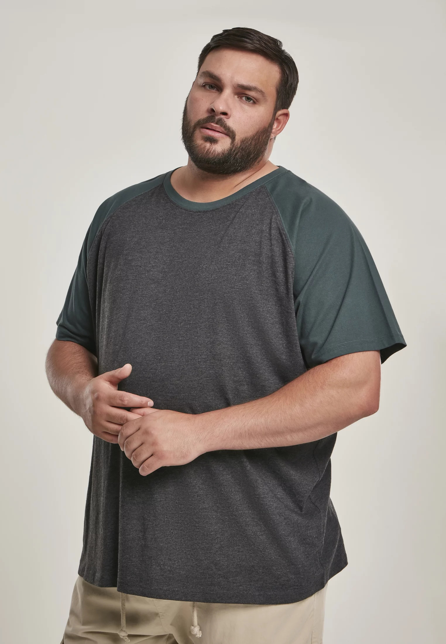 Raglan Contrast Tee charcoal/bottlegreen XL