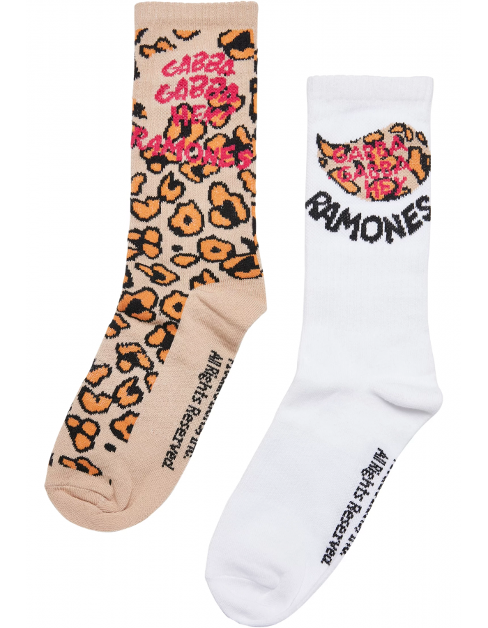 Balíček tvrdých ponožek obsahující dva páry variant Ramones se slavným motivem leoparda a vyšívaný nápis Ramones. Šaty do lýtek s elastickými manžetami a funkční materiál z bavlny, polyesteru a elastanu se skvěle nosí. Ponožky jsou dostupné ve čtyřech různých velikostech.