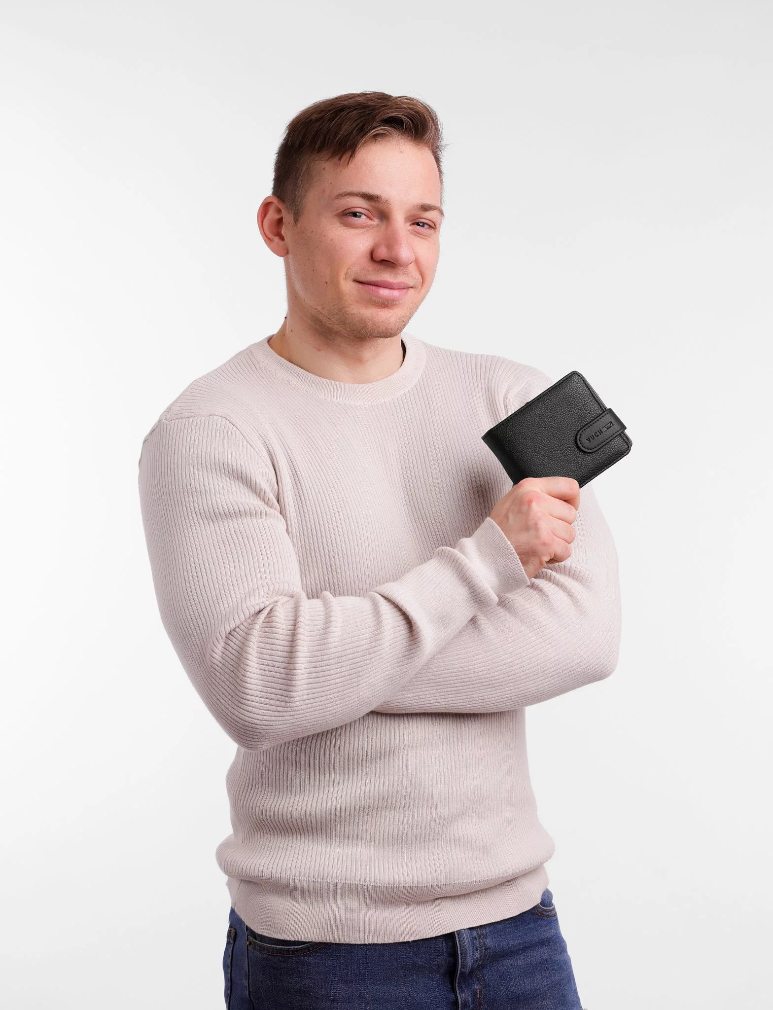 Tahle peněženka je pro muže, kteří mají rádi pořádek a prostor pro všechny svoje karty, bankovky a důležité vizitky. Materiál jí dodává na pevnosti a stylu, s embosovaným logem a patentem chránícím cennosti uvnitř. Stane se Tvoji novou součástí, protože ji nebudeš chtít dát z ruky?