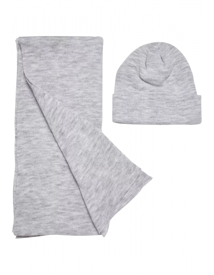 Set kombinuje základní jednobarevný kulich se širokou krempou a jednobarevný šátek v rozměrech 40 cm x 188 cm. Oba kusy sady jsou vyrobeny z recyklované polyesterové příze.