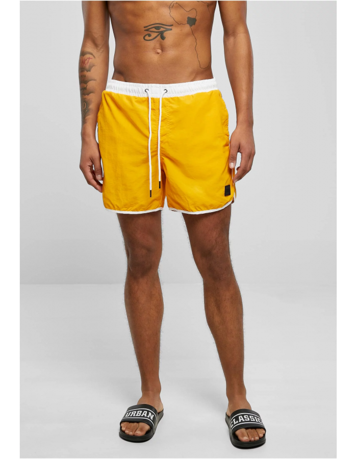 Klasický design sportovního oblečení: Retro Swimshorts vypadají opravdu autenticky díky svému krátkému střihu, mírně zakřivenému lemu nohavic, bílým kontrastním lemům a bílým odsazeným elastickým pasem se stahovací šňůrkou. Lehký nylonový materiál, boční kapsy a síťovaná vložka zajišťují optimální pohodlí.