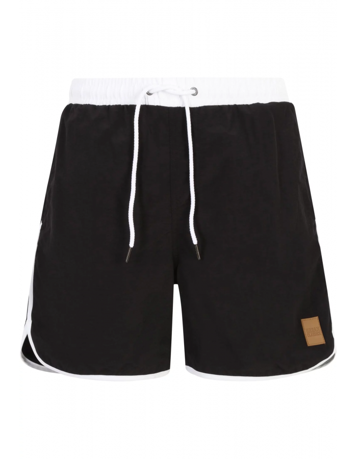 Klasický design sportovního oblečení: Retro Swimshorts vypadají opravdu autenticky díky svému krátkému střihu, mírně zakřivenému lemu nohavic, bílým kontrastním lemům a bílým odsazeným elastickým pasem se stahovací šňůrkou. Lehký nylonový materiál, boční kapsy a síťovaná vložka zajišťují optimální pohodlí.