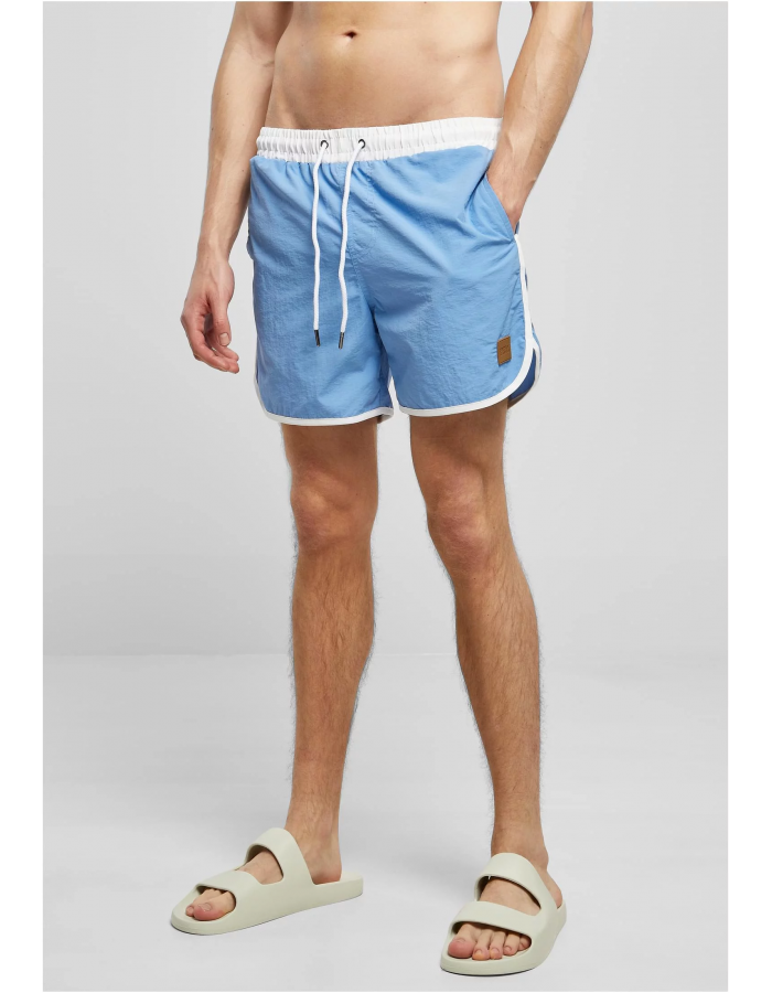 Klasický design sportovního oblečení: Retro Swimshorts vypadají opravdu autenticky díky svému krátkému střihu, mírně zakřivenému lemu nohavic, bílým kontrastním lemům a bílým odsazeným elastickým pasem se stahovací šňůrkou. Lehký nylonový materiál, boční kapsy a síťovaná vložka zajišťují optimální pohodlí.