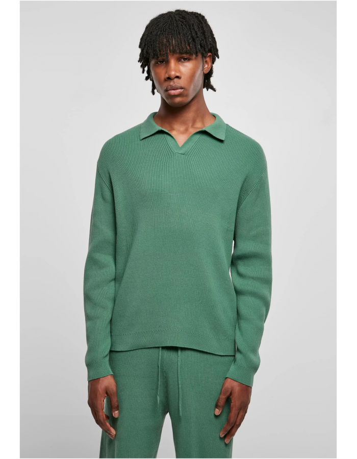 Pánské tričko s dlouhým rukávem doplní každý šatník městské módy – vyznačuje se polo límečkem s légou bez knoflíků a žebrovanou strukturou. Ležérní oversize střih s velkoryse spadlými rameny dokonale ladí s celkovým designem. Dlouhý rukáv je vyroben z bavlny šetrné k pokožce.