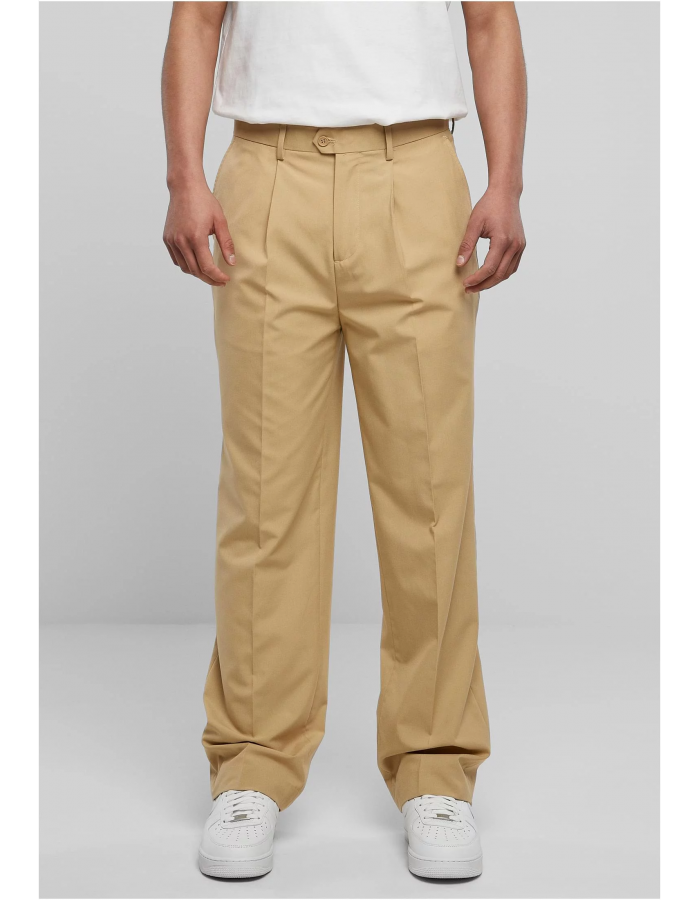 Tyto pánské kalhoty nabízejí poutka na opasek, boční kapsy a vertikální řasení a vyzařují klasický a sebevědomý vzhled. Jejich elegantní styl završuje zadní kapsa s klopou a knoflíkem a široké rovné nohavice. Kalhoty jsou regular fit a sestávají ze směsi polyesteru a viskózy.