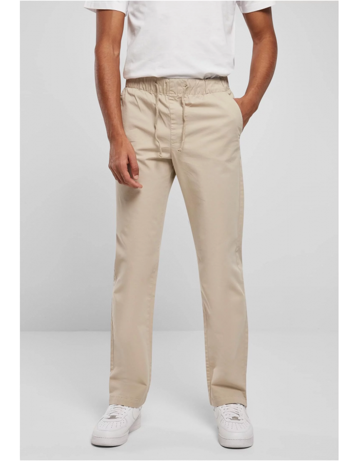 Pánské látkové kalhoty spojují ležérní styl nošení potu s přitažlivostí klasických ležérních kalhot. Jsou vybaveny širokým elastickým pasem se stahovací šňůrkou a nabízejí boční kapsy, integrované zadní kapsy i rovné nohavice, které jsou po stranách mírně rozparkované. Kalhoty mají regular střih a jsou vyrobeny z kvalitní keprové tkaniny s malým množstvím elastanu, takže nabízejí optimální pohodlí při nošení.