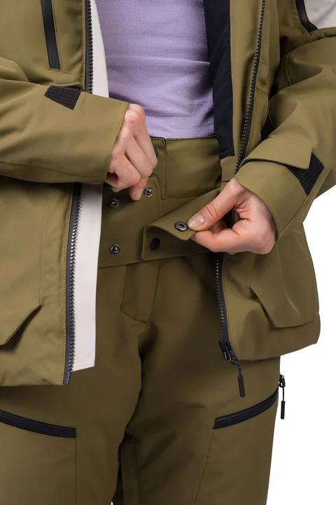 Technický střih lyžařské bundy je ideální pro lyžařky kombinující sjezdovku a volný terén poblíž lanovky. Membrána Climatic Active s parametry 20 000mm vodní sloupec a 20 000 prodyšnost, tě spolehlivě ochrání proti promoknutí při zachování vysoké prodyšnosti. O tepelnou izolaci se stará špičková výplň Primaloft Silver, která má k poměru nízké gramáže vysokou hřejivost. Bunda je vyladěná ve všech detailech od kompletně voděodolných YKK zipů přes lepené rukávové patky a kšilt, anatomicky tvarované rukávy s vnitřní elastickou rukávovou manžetou s otvorem na palec, Recco pasivní záchranný lavinový systém, sněhový límec v pase, vnitřní systém kapes až po vnitřní zateplený límec. Technologickým benefitem je použitý systém efektivního zateplení, které je aplikované v trupu, horní části rukávů, ramen a límci, spodní část rukávů a dolní část trupu je bez zateplení. V bundě tak pocítíte mnohem větší pohyblivost, celkovou lehkost, ale díky kvalitní Primaloft výplni zůstanete v komfortu. Systém propojení bundy a kalhot umožňuje snadné připnutí lyžařských kalhot Hannah Soren. Bunda má strečový materiál, který zvyšuje komfort při nošení a svobodu pohybu.