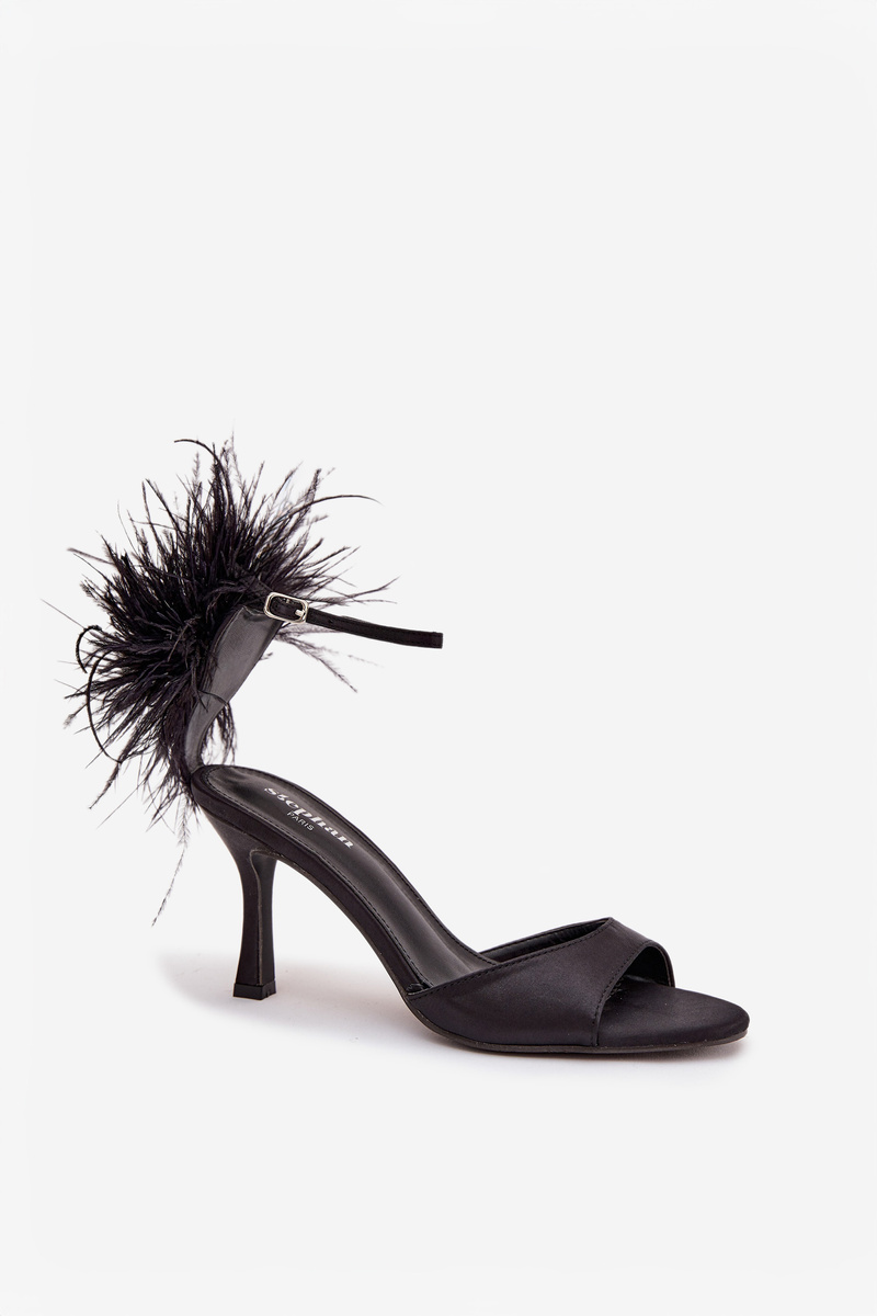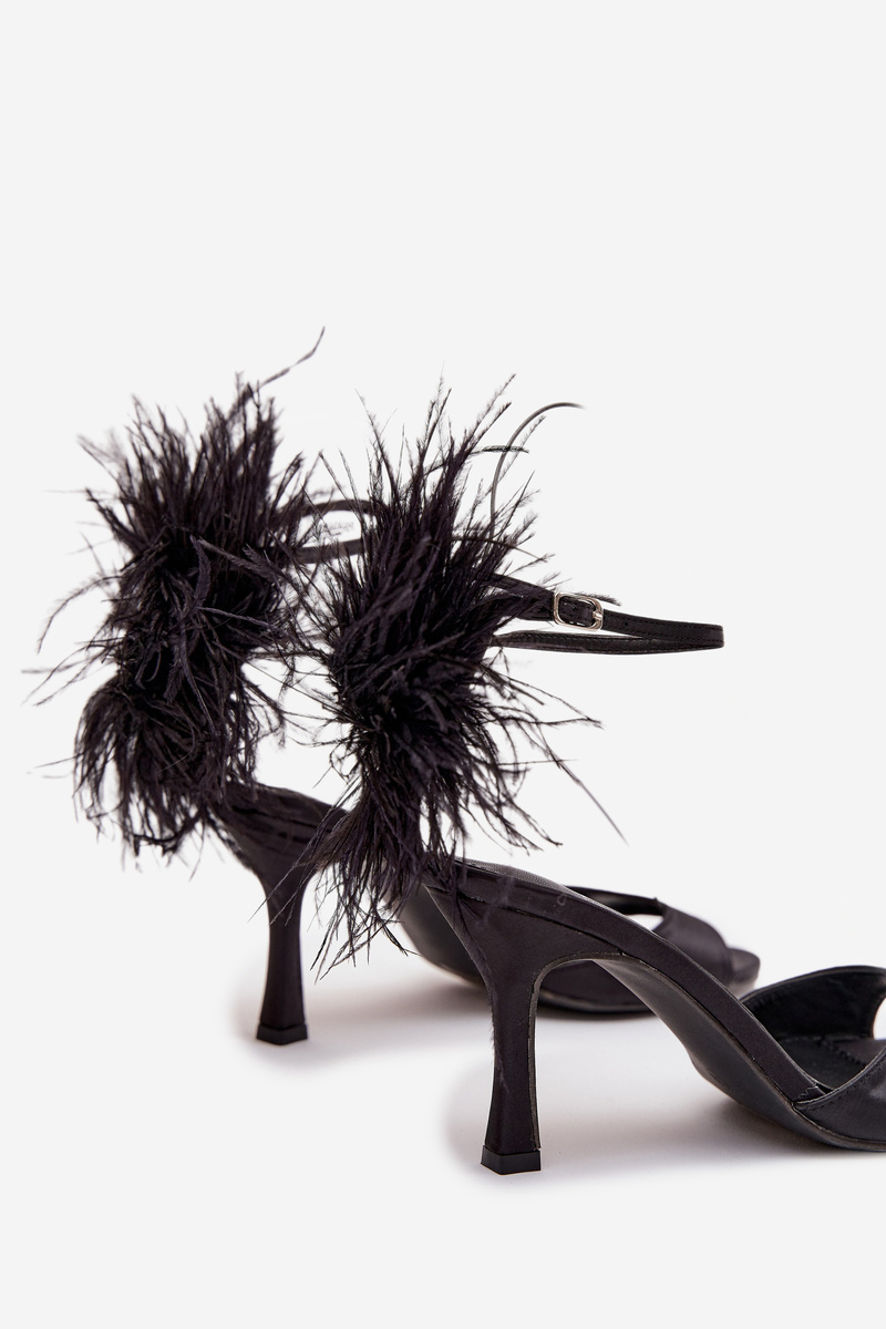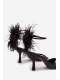 Elegantní dámské sandály Caelina v černém provedení s dekorativním peřím kombinují módní design, pohodlí a ženský vzhled. Peří na pásku dodává sandálům hravý a originální detail, zatímco špičatý tvar a střední podpatek opticky prodlužují nohy. Ideální volba na večírky, oslavy, rande nebo slavnostní příležitosti.