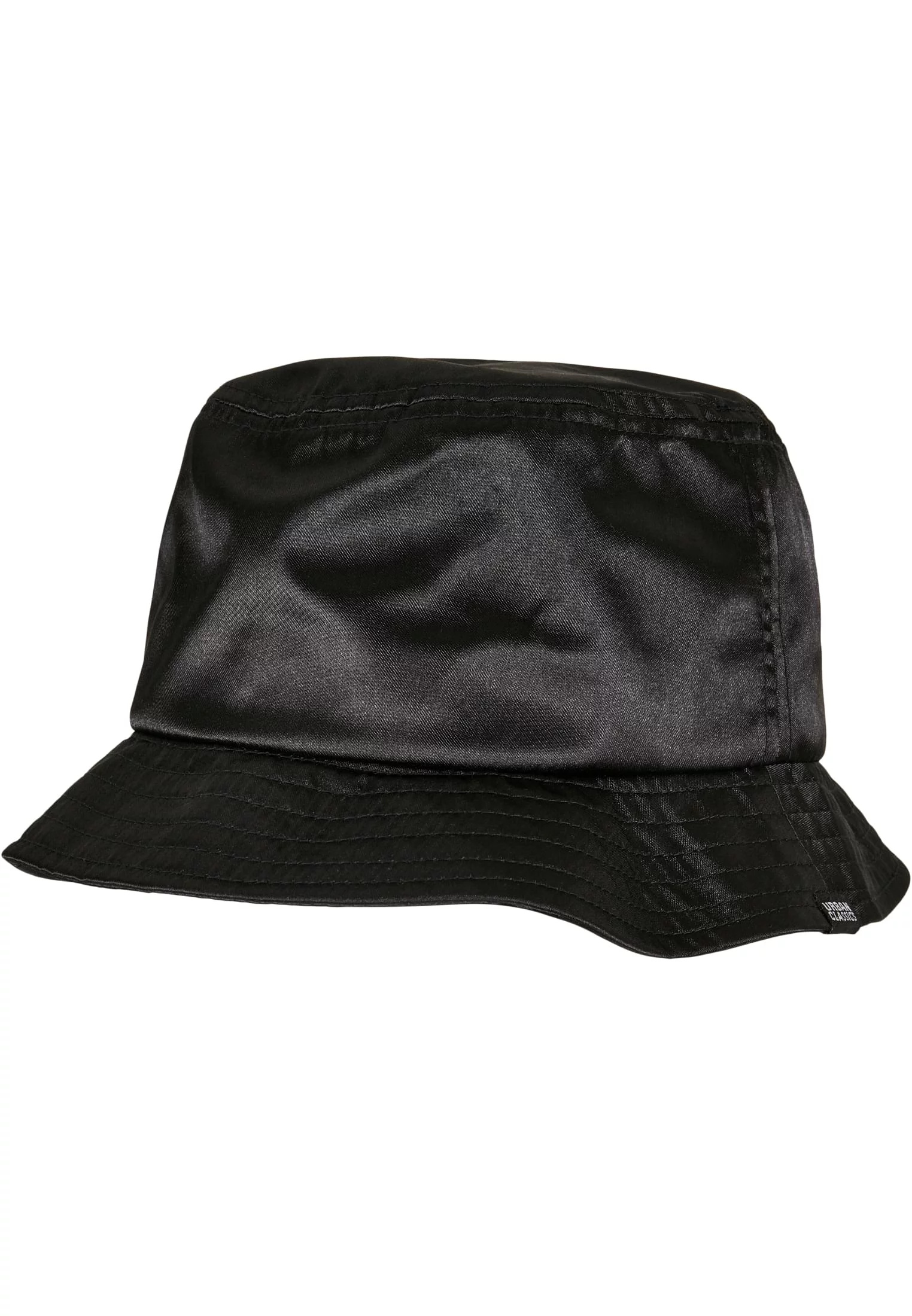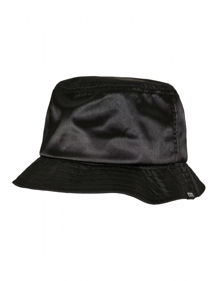 Bucket hat jde do městské módy! Proslulý styl bucket hat prochází úpravou, která se projevuje třpytivou saténovou látkou, která zvýrazňuje klasický tvar širokým, šikmým okrajem a ozdobnými švy. Svěží vzhled završuje malá vlajka Urban Classics na okraji.