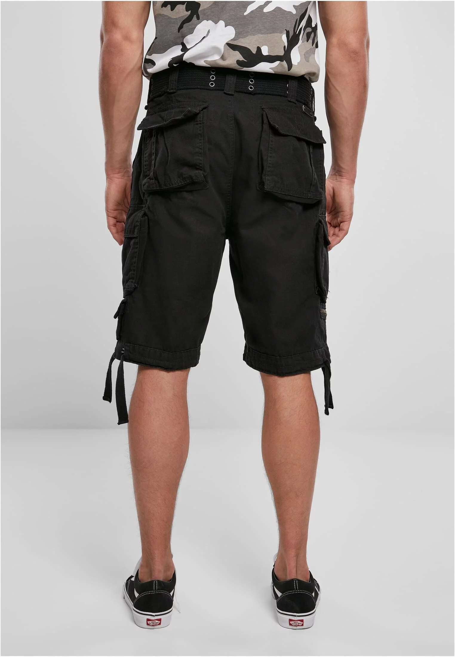 Divoké šortky pro horké dny. Tyto těsné cargo šortky ponechávají dostatek prostoru pro vaše nohy, aby se mohly opálit, a hodí se k tílkům nebo vzdušným košilím. Pevný materiál v případě potřeby přežije safari v džungli nebo delší horské túry, ale bude se cítit pohodlně i v městském prostředí. Kromě prostorných bočních kapes pod nimi najdete dvě malé minikapsy. Pásek s ozdobnými očky je dodáván bez příplatku.