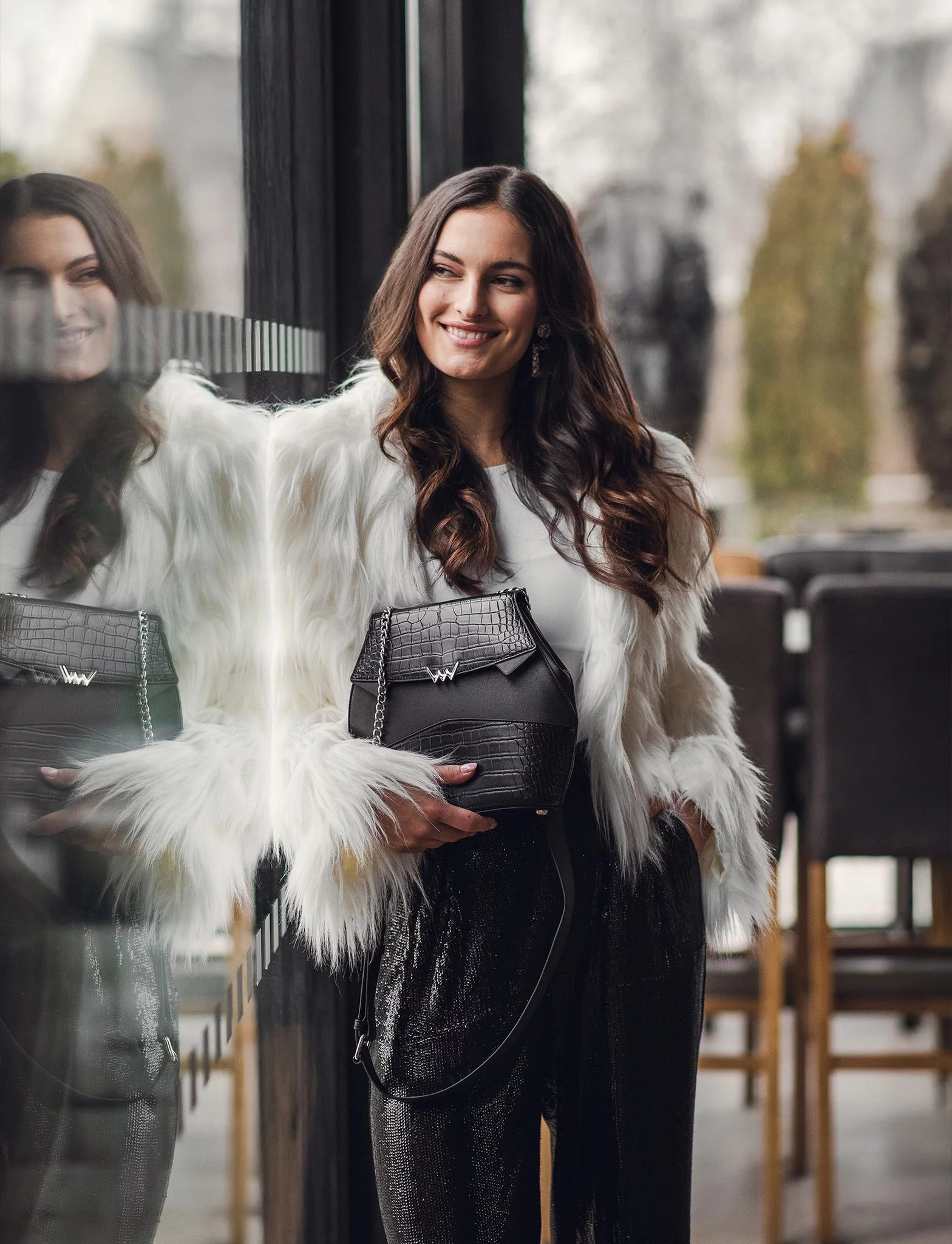 Tahle kabelka je ztělesněním každodenní elegance s nádechem krejčovského umění Dominika Navrátila. Inspiraci vzal ze střihu korzetu a ohybu klopy saka, což kabelce dodává zcela neobvyklý look. Nenápadné, ale precizní prošívání v kombinaci hladkého a strukturovaného materiálu odkazuje na mistrovské krejčovské řemeslo. Kabelka je prostě perfektní společník na odpolední kávu s přáteli, která zvládne i pár lichotek navíc.