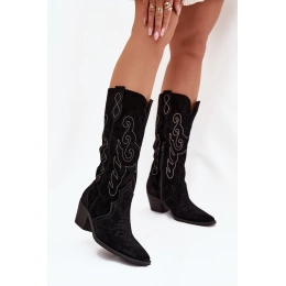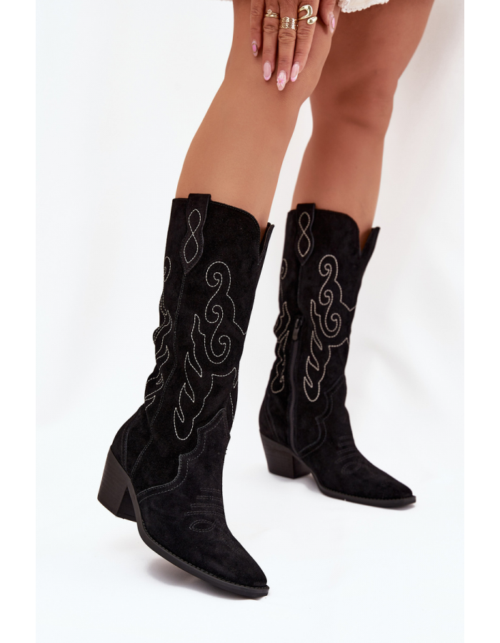 Dámské kovbojky z pravého semiše představují velmi módní obuv pro podzimně-zimní sezónu. Stabilní nízký podpatek zajišťuje pohodlí a vhodnost pro každodenní nošení. Model je wsuwací s přídavným zapínáním na zip pro snadné nazouvání. Cholewka je zdobená prošitím, které dodává typický kovbojský vzhled. Stylový střih činí tyto boty ideální volbou pro různé outfity, ať už na běžné nošení, nebo na speciální příležitosti.